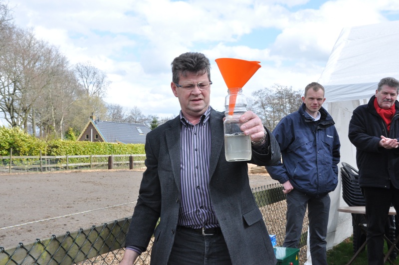 Woensdag heeft Pieter van der Veen, wethouder Reiniging en riolering van de gemeente Achtkarspelen, het aanleggen van de IBA-systemen in het buitengebied officieel afgesloten In mei 2009 ging de eerste IBA de grond in. Nu, nog geen jaar later staat de teller op 354. Pieter van der Veen heeft symbolisch een monster genomen van het gezuiverde afvalwater aan Egypte 15 in Twijzel.