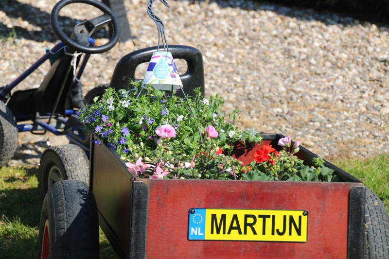 Onder andere grote meerkleurige hanging Baskets, effen kleurige hanging Baskets, diverse perkplanten waaronder, geraniums, verbena’s, petunia’s, fuchsia’s en millionbel. Alle bloemen zijn vers komen rechtstreeks van de kweker. Verder was het rad van avontuur met mooie prijzen, gezellige koffiehoek met eigengemaakte cake, taart en cupcakes en verder broodjes met eigengemaakte hamburger, pannenkoeken van molenmeel, verse aardbeien en een stand van Samen loop voor hoop.