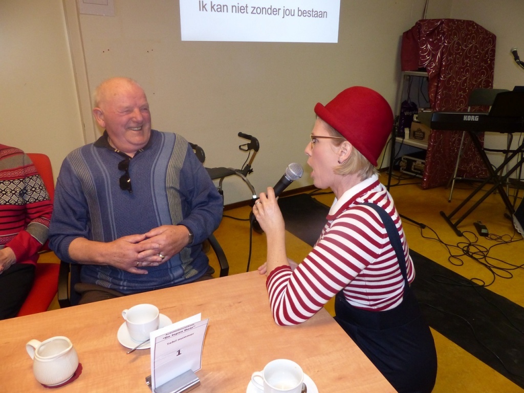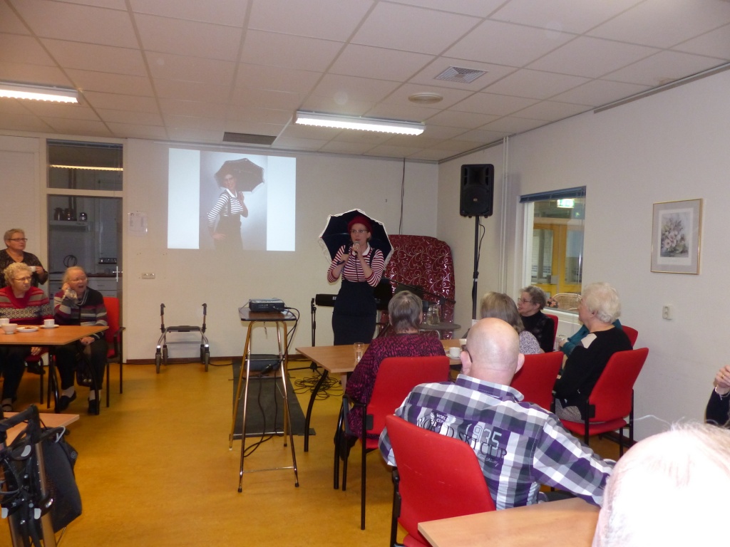 Stichting ”De Iepen Doar” had zaterdagmiddag Adriana Westra uitgenodigd in Nij Tjaerda. Deze middag werd speciaal georganiseerd voor de 55+ van Damwâld. In de rol als Tetje van Toen kwam ze met haar voorstelling ‘De Hort op’ het toneel op. Tetje van Toen is een gezellig stadstypetje. Zij kletst en zwetst op humoristische wijze verhalen en liedjes aan elkaar. Na afloop kon men nog nagenieten van soep en /of een snack.