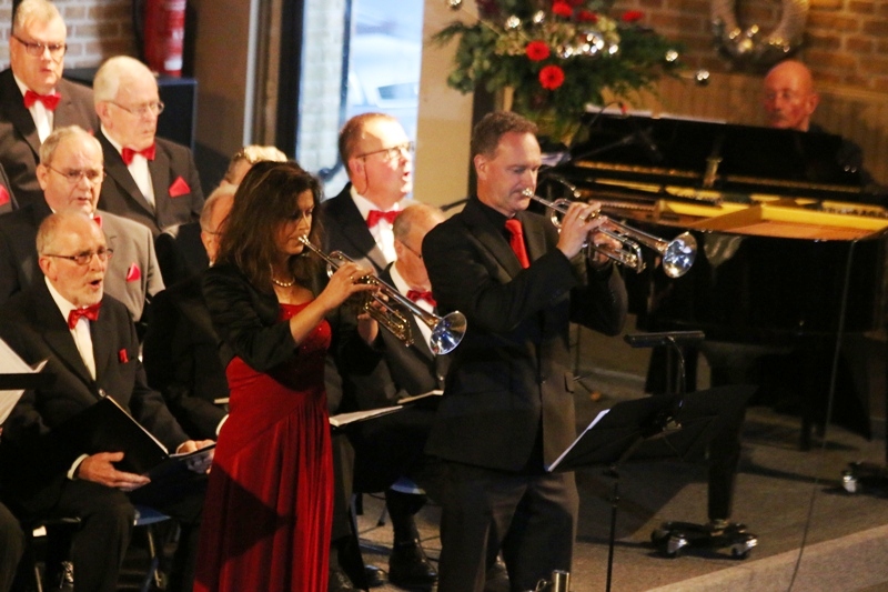 Een prachtige ondersteuning was de tenor Barend Wiltjer die de solo’s voor zijn rekening nam. Het koor werd op een geweldige wijze begeleid door, piano, orgel en trompetten afgewisseld met muzikale intermezzo’s van het trompettistenduo Arjan en Edith Post, organist Jan Kroeske, pianist Jan Lenselink en solist Barend Wiltjer.