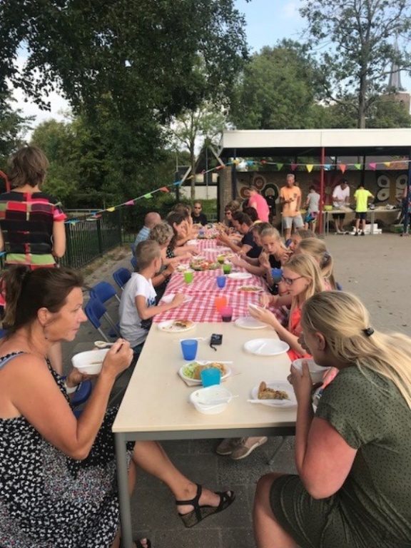 Op woensdag 18 juli werd er een gezellige zwemmiddag georganiseerd daarna was het officiële afscheid op school met een etentje op het schoolplein waarbij alle ouders en teamleden gerechten meenamen. Iedereen werd tot slot nog bedankt en een hele fijne vakantie toegewenst. En de leerlingen van groep 8 werd natuurlijk heel veel succes gewenst op de nieuwe school !