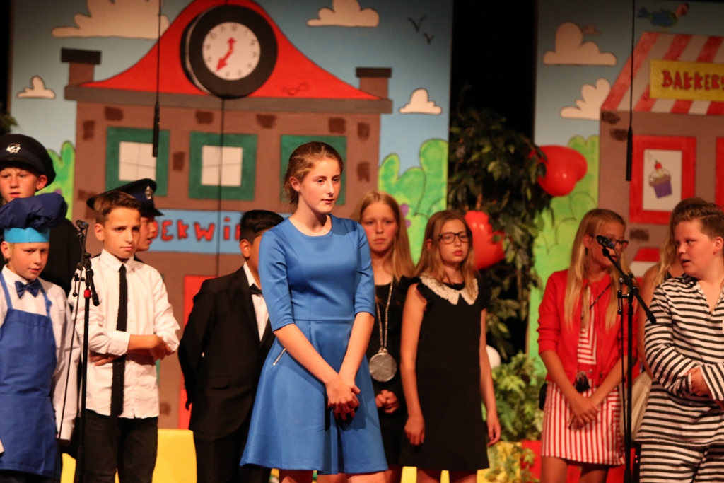 Groep 8 speelden afgelopen woensdag de musical ” Help, het bruidspaar is vermist”. Het zoekraken van het bruidspaar zorgde voor chaos op het bruiloftsfeest. Na een gezellige middag kanoën, waterfietsen en een heerlijk buffet met de ouders op school, speelden de kinderen vol overgave hun rol. Het werd een avond vol humor en emoties.