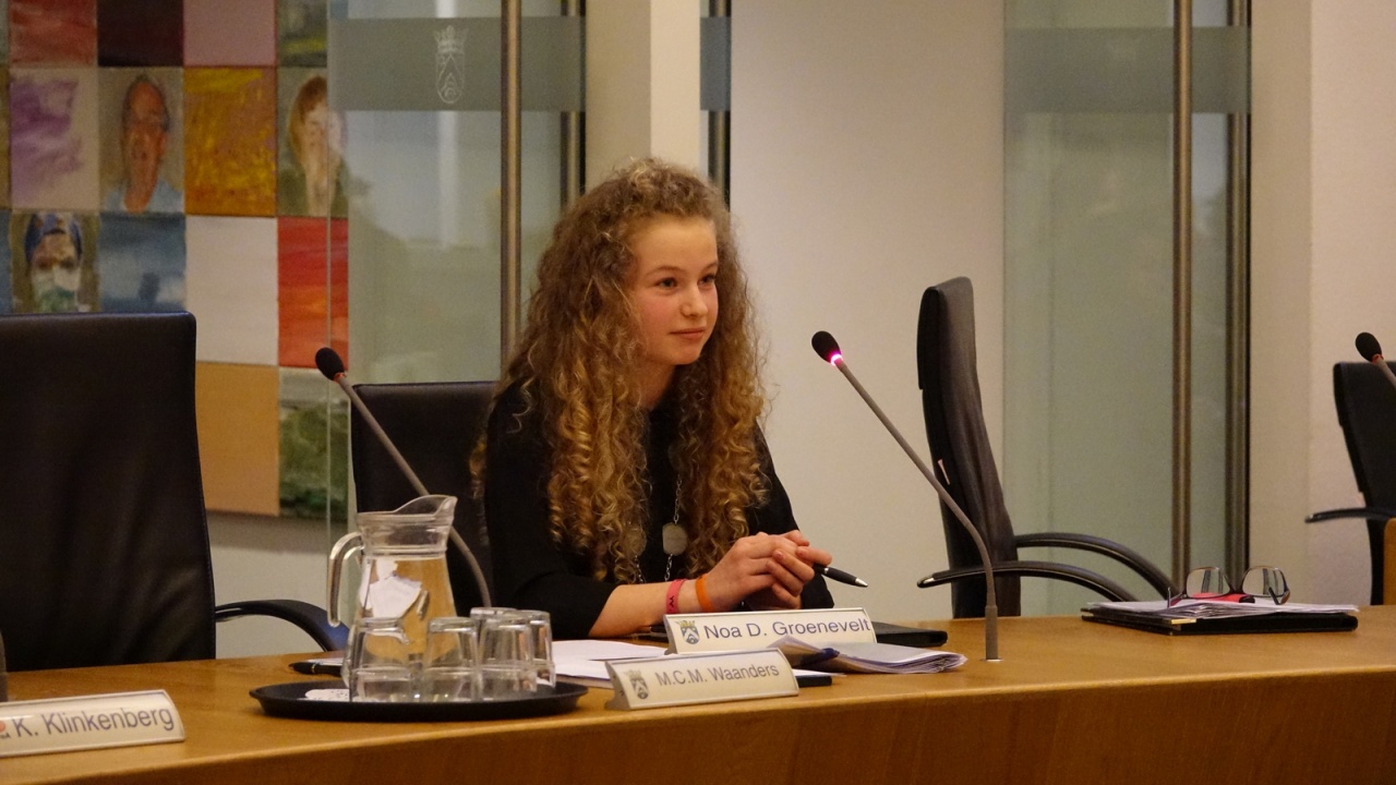 De raadszaal in Dokkum was op woensdag 24 januari een keer niet het toneel van politici, maar van leerlingen uit groep 7 en 8. Zij kwamen met familie, vrienden en vriendinnen naar de verkiezing van de negende kinderburgemeester van Dongeradeel. Na een spannende strijd werd Aukje Miedema van de Foeke Sjoerdsskoalle uit Oosternijkerk gekozen.
