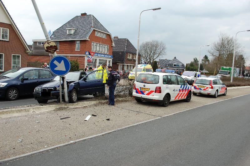 Hierbij raakte een persoon gewond welke per ambulance is overgebracht naar het ziekenhuis. Het verkeer kon langzaam het voertuig passeren waardoor een korte file ontstond. Bergingsbedrijf Boersma heeft de auto die flinke schade opliep afgesleept,ook raakte de lantaarnpaal zwaar beschadigd.