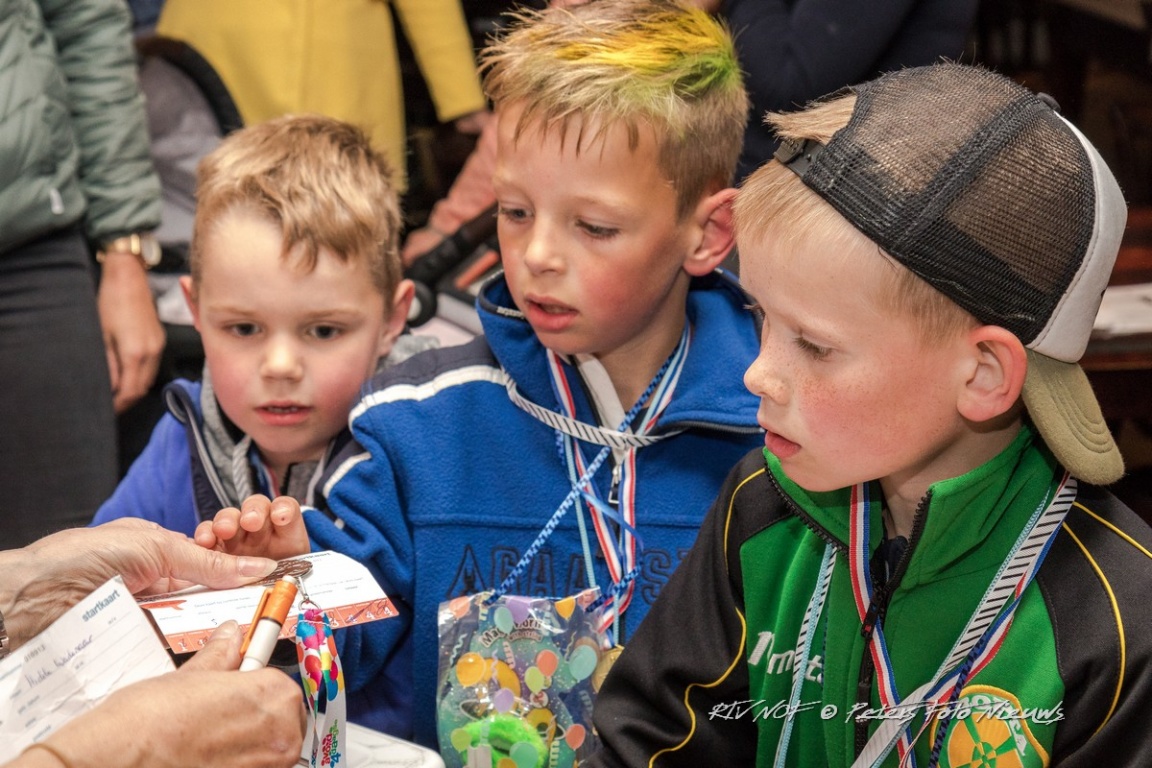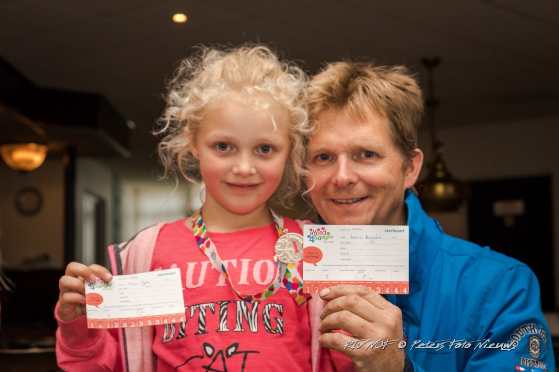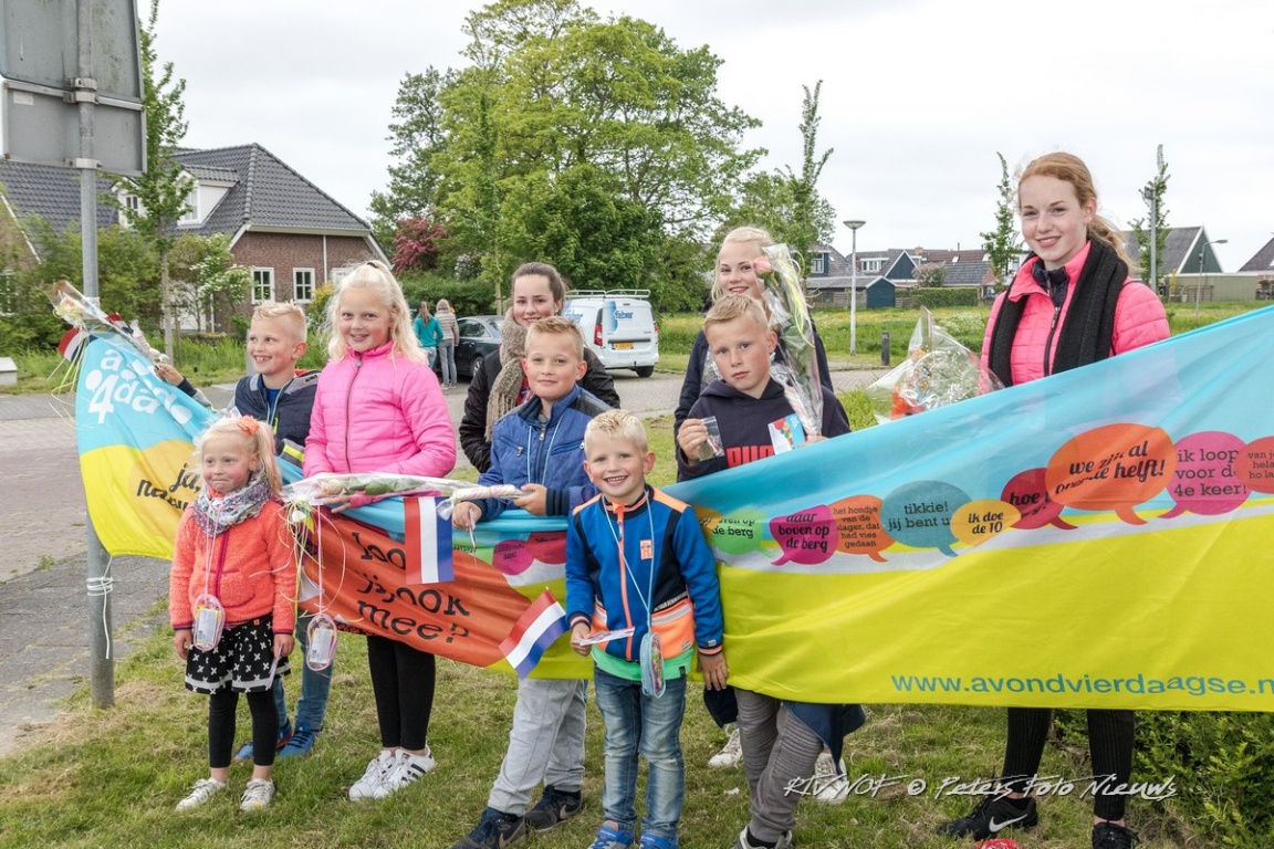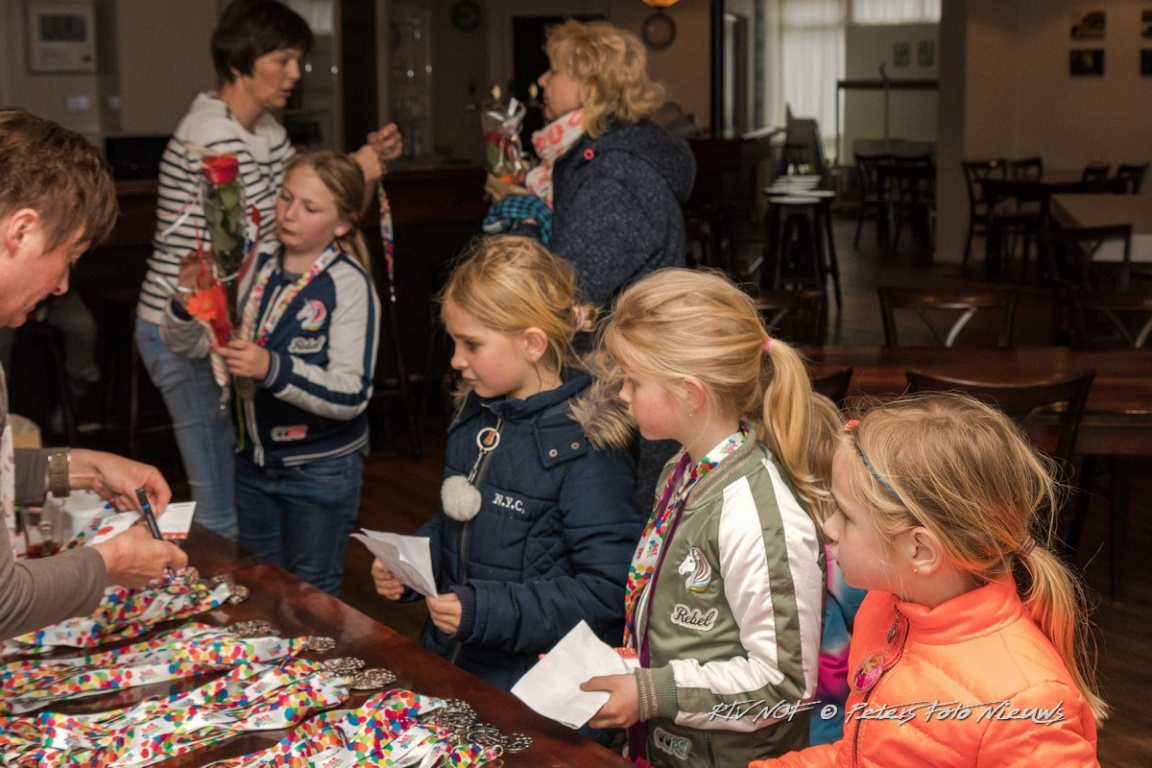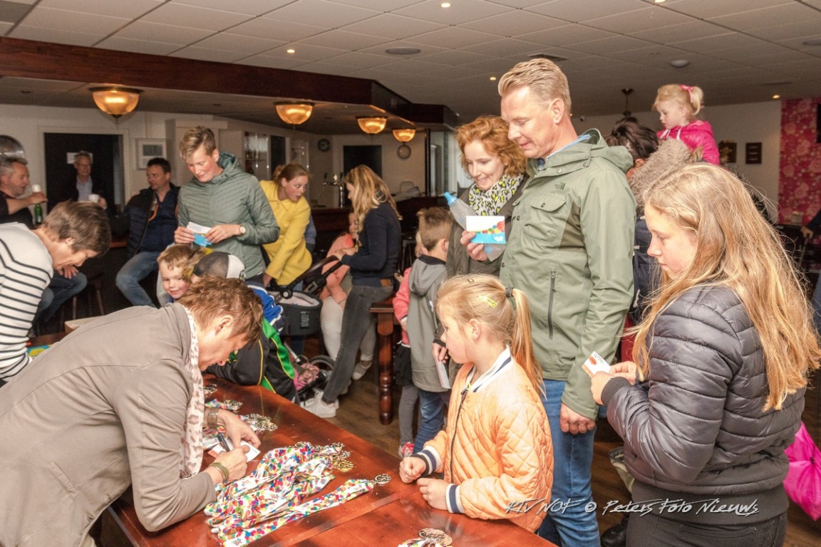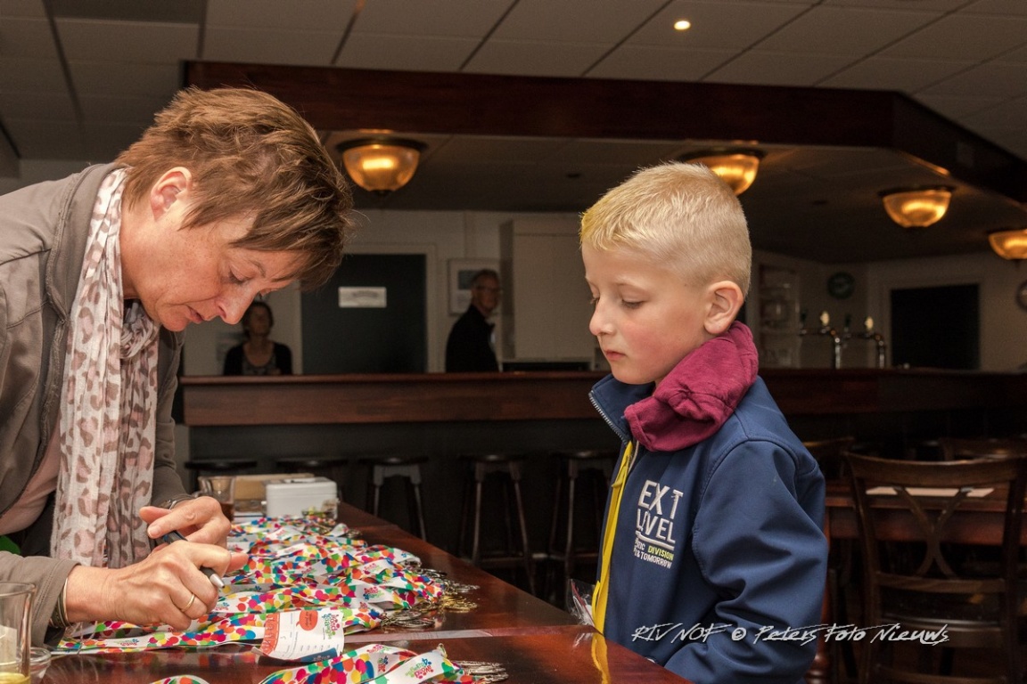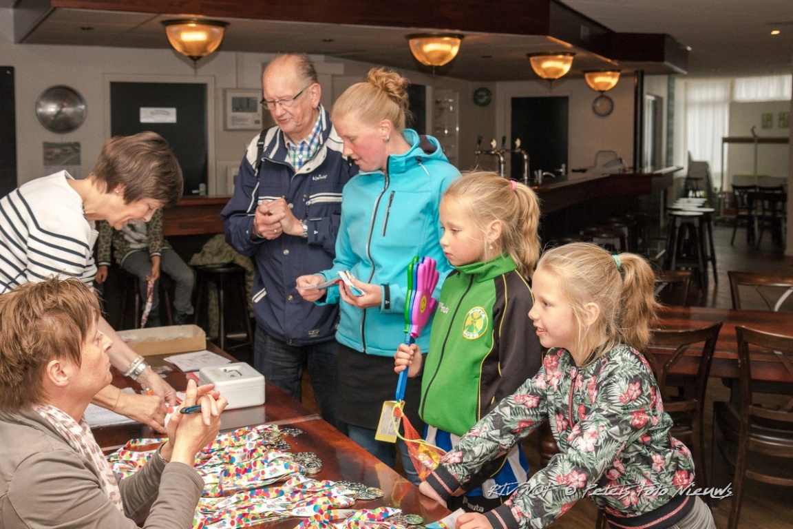 Inmiddels stonden er bij het dorpshuis ouders, pake’s, beppe’s, opa’s en oma’s of andere bekenden te wachten met bloemen en beloningen. De deelnemers werden zo binnen gehaald en beloond voor hun prestatie. Snel naar binnen voor het laatste stempeltje en natuurlijk waar alles om draait, de felbegeerde medaille. Allemaal trotse gezichten toen ze deze in ontvangst namen. Djoke Howerda liep dit jaar voor de 31 keer mee en kreeg dan ook extra waardering voor haar trouwe deelname. De organisatie laat weten dat ze zeer tevreden zijn over het verloop en danken een ieder voor de deelname.