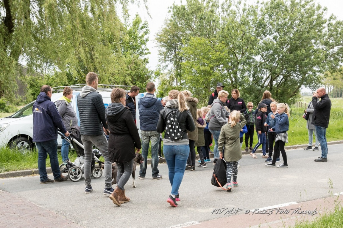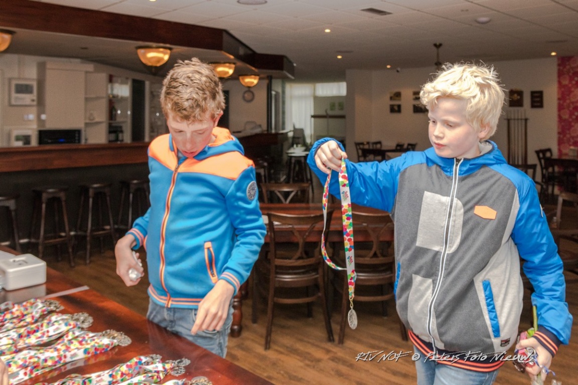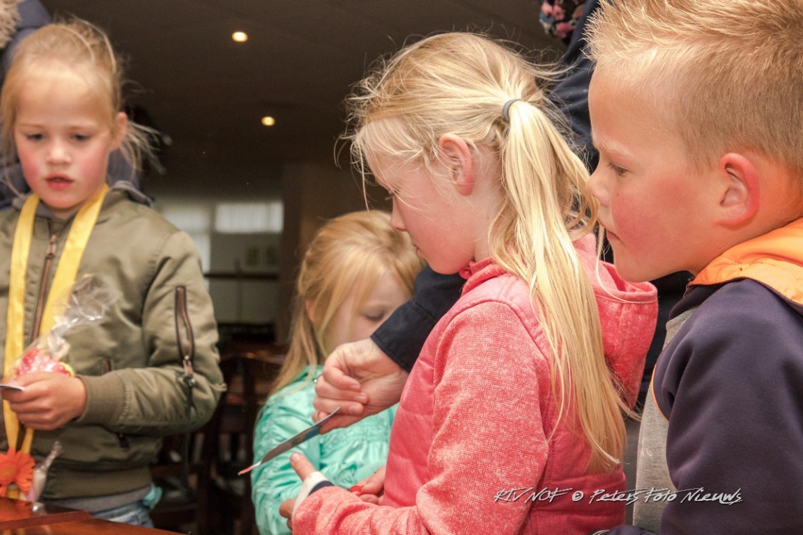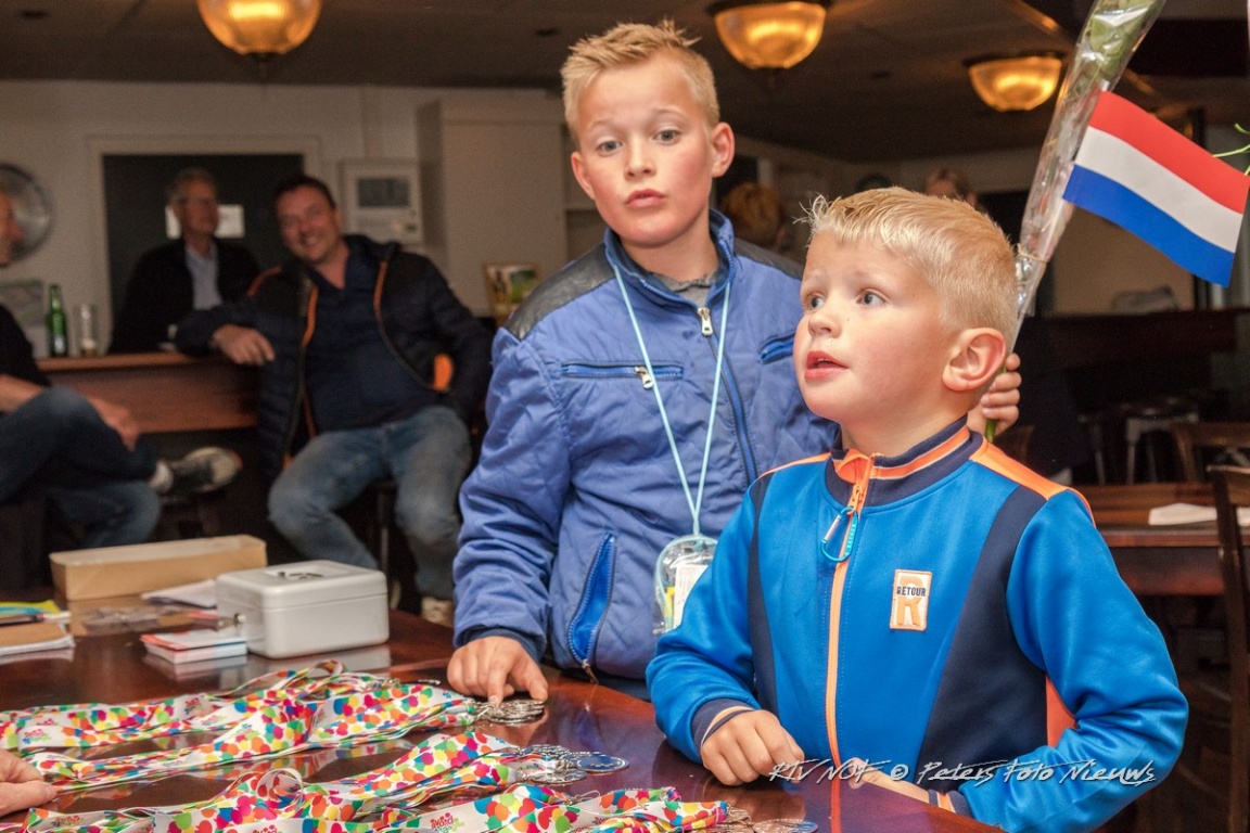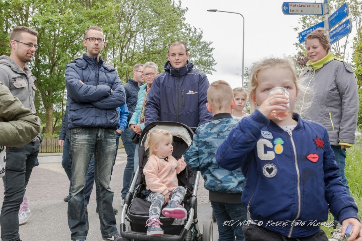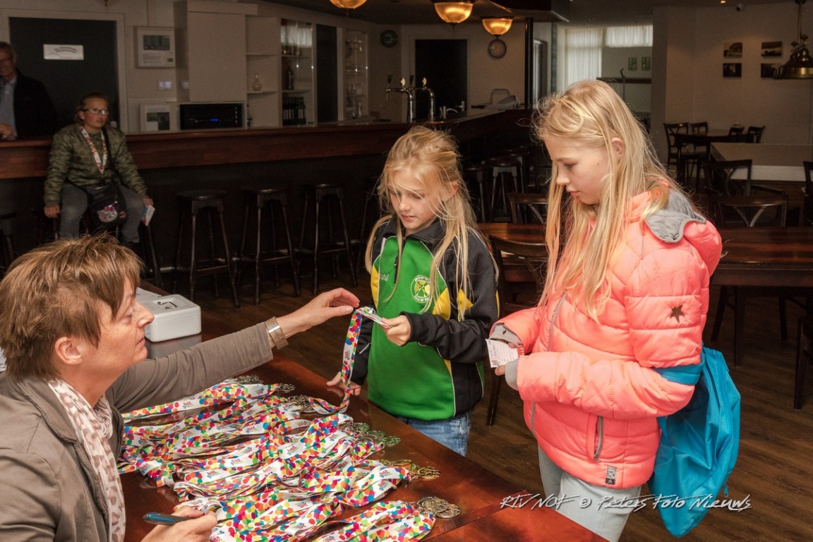Inmiddels stonden er bij het dorpshuis ouders, pake’s, beppe’s, opa’s en oma’s of andere bekenden te wachten met bloemen en beloningen. De deelnemers werden zo binnen gehaald en beloond voor hun prestatie. Snel naar binnen voor het laatste stempeltje en natuurlijk waar alles om draait, de felbegeerde medaille. Allemaal trotse gezichten toen ze deze in ontvangst namen. Djoke Howerda liep dit jaar voor de 31 keer mee en kreeg dan ook extra waardering voor haar trouwe deelname. De organisatie laat weten dat ze zeer tevreden zijn over het verloop en danken een ieder voor de deelname.