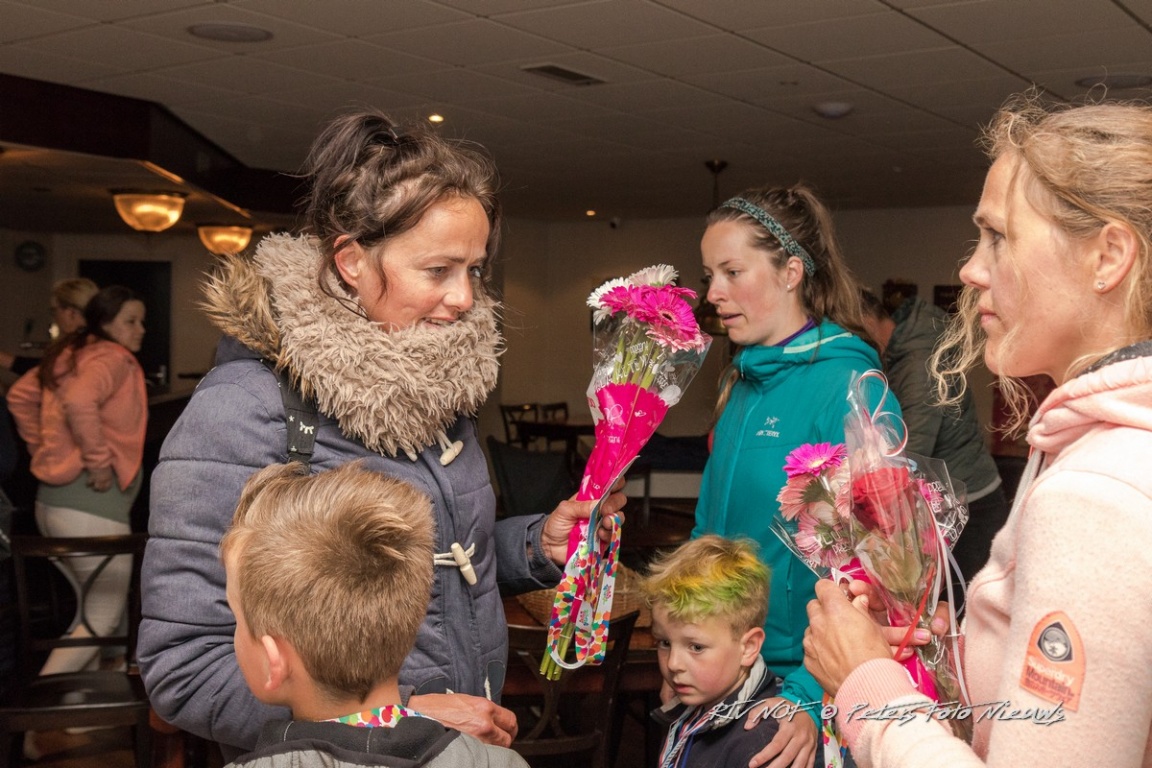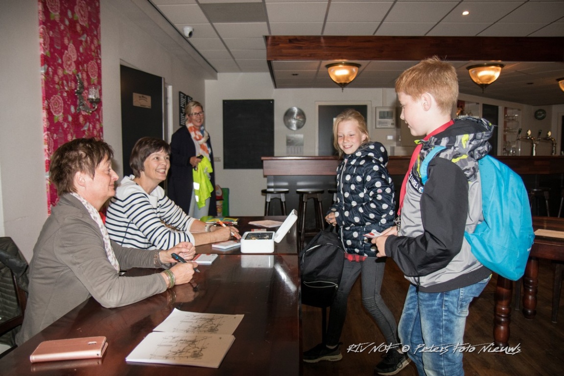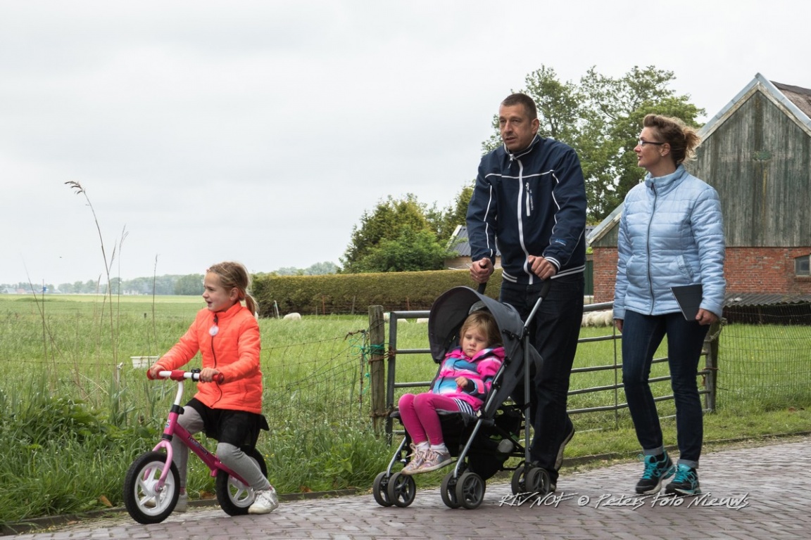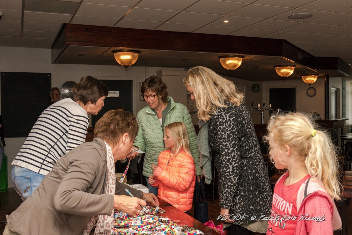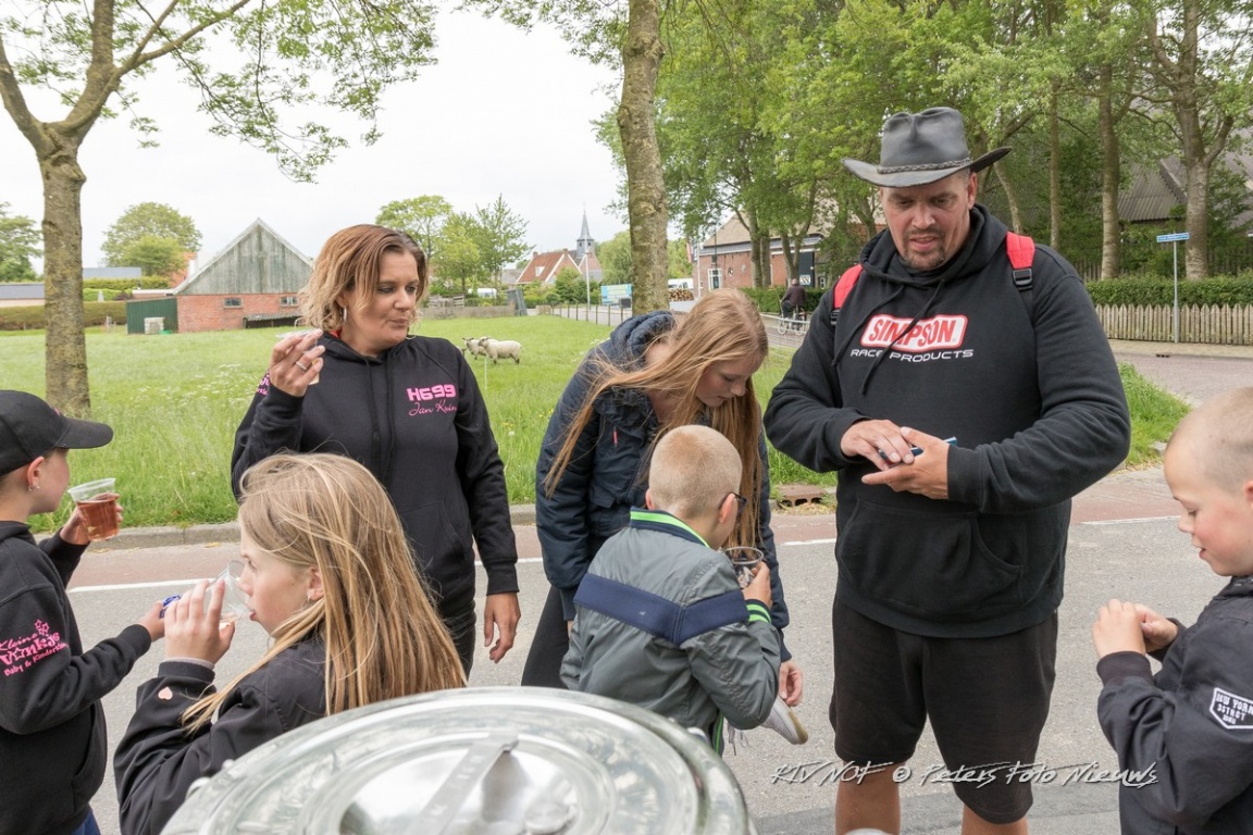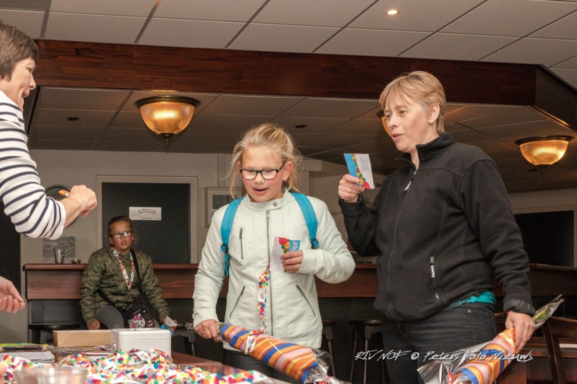 Inmiddels stonden er bij het dorpshuis ouders, pake’s, beppe’s, opa’s en oma’s of andere bekenden te wachten met bloemen en beloningen. De deelnemers werden zo binnen gehaald en beloond voor hun prestatie. Snel naar binnen voor het laatste stempeltje en natuurlijk waar alles om draait, de felbegeerde medaille. Allemaal trotse gezichten toen ze deze in ontvangst namen. Djoke Howerda liep dit jaar voor de 31 keer mee en kreeg dan ook extra waardering voor haar trouwe deelname. De organisatie laat weten dat ze zeer tevreden zijn over het verloop en danken een ieder voor de deelname.