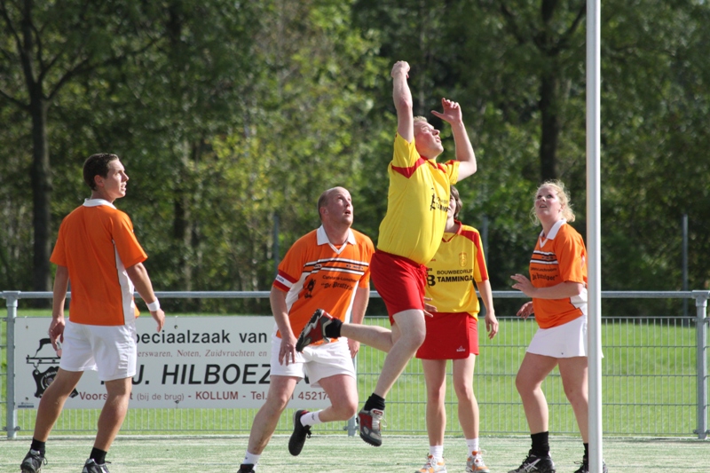 Afgelopen zaterdag had Invicta 2 een derby tegen Flamingo’s uit Buitenpost een belangrijke overwinning behaald. Derby’s zijn over het algemeen meer spannend dan goed en ook dit keer was dat het geval.BELANGRIJKE PUNTEN VOOR INVICTA 2 Invicta 2 heeft in de derby tegen Flamingo’s uit Buitenpost een belangrijke overwinning behaald. Derby’s zijn over het algemeen meer spannend dan goed en ook dit keer was dat het geval. De Kollumers hadden dit aan zichzelf te wijten, want in de eerste helft had het gat al geslagen moeten zijn. Met de wind mee lukte het echter niet om de kansen te benutten. Invicta kwam wel vlot op een 3-0 voorsprong door onder meer twee doelpunten van de prima spelende Hans Thalen. Via 5-1 kwam Flamingo’s echter voor rust nog terug tot 5-3. Na rust hetzelfde spelbeeld, de thuisploeg had duidelijk een veldoverwicht, maar hield door scoren na te laten Flamingo’s in de wedstrijd. Tot 7-6 bleven de Buitenposters aanklampen, maar vervolgens liep Invicta uit naar 10-6. Deze voorsprong gaf Invicta niet meer uit handen en enkele spelers van Flamingo’s dachten met onnodige fysieke overtredingen de wedstrijd te kunnen kantelen. Dit kwam een heer van Flamingo’s op een gele kaart te staan. Invicta liet zich hierdoor niet van de wijs brengen en speelde de wedstrijd gedecideerd uit. Geertje Krap scoorde in de tweede helft drie belangrijke doelpunten en Invicta won verdiend met 12-9. Halverwege de tweede helft werd Thea Beets gewisseld en zij speelde helaas haar laatste wedstrijd in het oranje. Namens Invicta succes met studie en werk…
