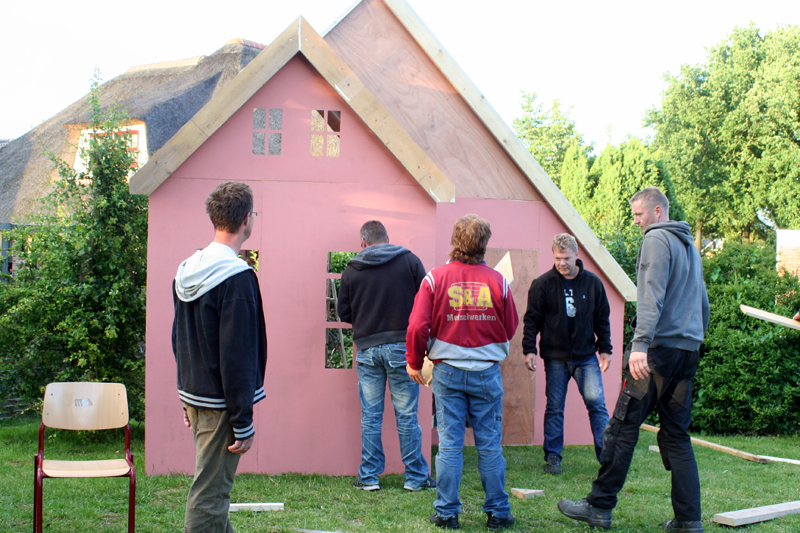 De vrijwilligers van de bouwploeg van O.B.S. It Holdersnêst zijn maandagavond begonnen met de opbouw van het decor. Aanstaande zaterdagavond wordt op het terrein van de basisschool het Iepenloftspul ‘Salomon Levi’ opgevoerd.