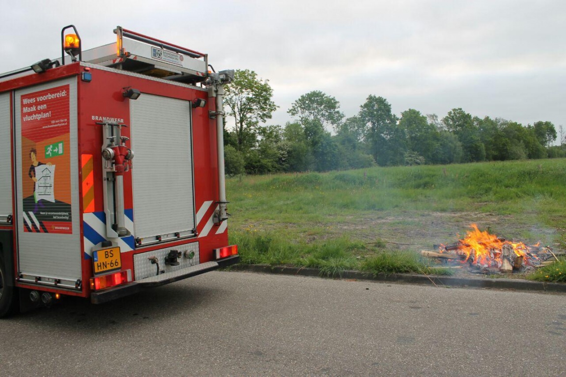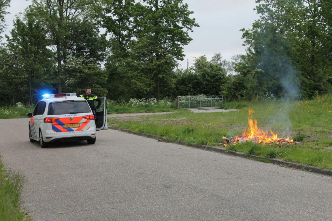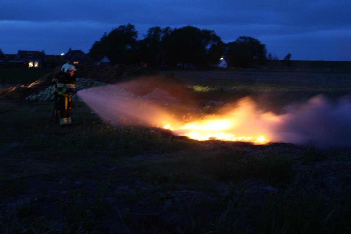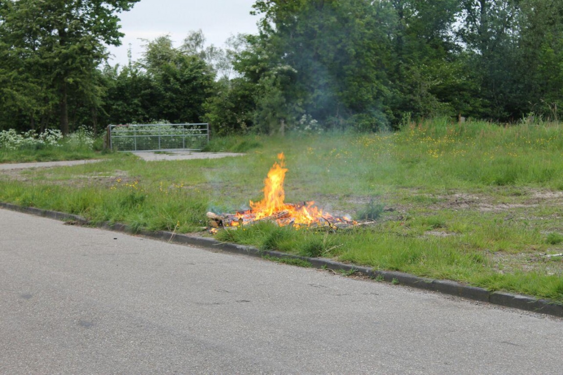 Achter in een perceel brandde een afvalbult. De brandweer zou het vuur eerst te lijf gaan met vuurzwepen, maar toen bleek dat er onder andere plastic werd verbrand werd het blusvoertuig richting de bult gereden. Een straal hoge druk werd afgelegd en de brand was snel onder controle.