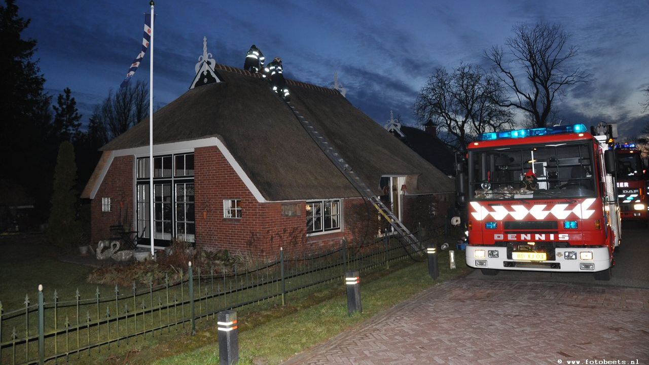 Door snel ingrijpen kon voorkomen worden dat het rieten dak vlam vatte. De brandweer heeft de schoorsteen geveegd. De hoogwerker uit Dokkum kon onverrichterzake terug keren naar de kazerne. De schoorsteen liep schade op, waarbij zelfs het zink was weggesmolten door de hitte.