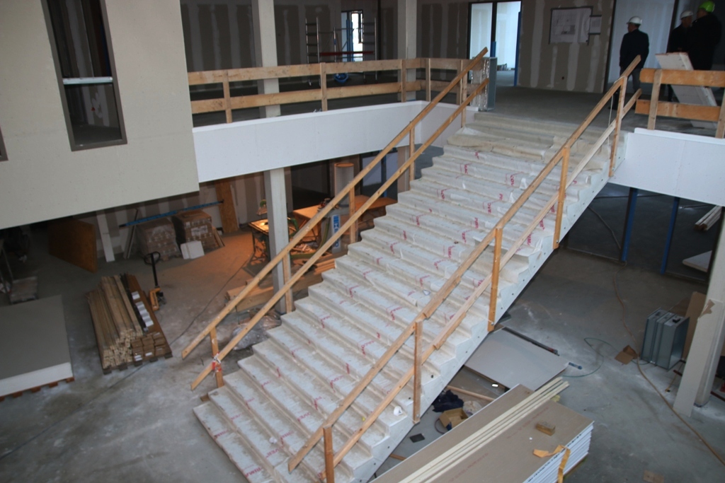 Wethouder Paul Maasbommel is onder de indruk van het gebouw dat al een flink eind in de steigers staat. “Het wordt prachtig en de bouw verloopt voortvarend. Het metselwerk is klaar en ook binnen krijgt het steeds meer vorm”.In april draagt aannemer Hesco Bouw uit Stadskanaal het gebouw over aan de scholen, dorpshuis De Colle en de bibliotheek. Zij kunnen dan beginnen aan de inrichting.
