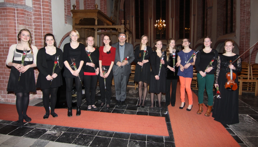 De jonge solistenJantinaReijenga, en Marja Klazenga, trompet, Annemijn van Dijk enSari Wempe, viool,Marjon Plantingen Chantal Bruntop fluitbrengen muziek van de componisten Mozart, Lalo, Neruda en Ganne ten gehore.4 van hen behaaldenkortgeleden een eervolle vermelding op het Prinses Christina Concours Noord 2013.