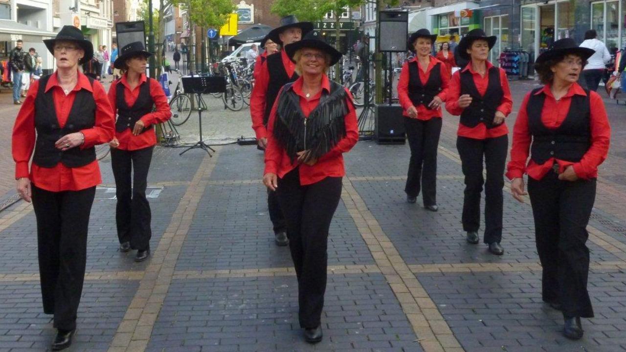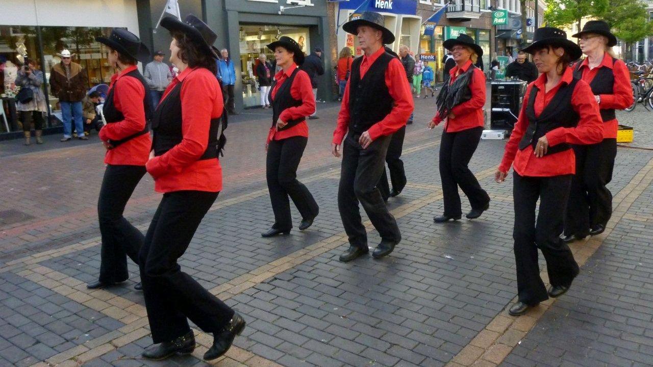 De countryline Dance Club Dance4pleasure uit Hantumhuizen zorgde op vrijdagavond met een prima optreden voor een gezellige sfeer op de Grote Breedstraat in Dokkum.