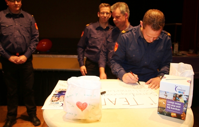 De stuurgroep van de SamenLoop voor Hoop werd voorgesteld aan het publiek, en ook heeft het eerste team zich officieel ingeschreven. Dit was het brandweerteam. In brandweertenue zetten zij hun handtekeningen, en zo werd ook het startsein voor de inschrijving voor teams gegeven. Ook de burgemeester van Kollumerland, Bearn Bilker was aanwezig.