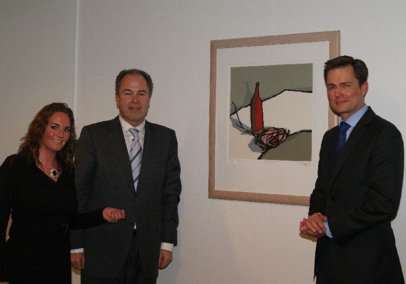 De collectie bestaat uit werken van bekende Nederlandse grafici zoals Jeroen Hermkens, Vincent van Ojen, Marcel Schellekens en Rolf Weijburg. Het doek dat door beide heren vakkundig op een passende plek werd opgehangen is het doek ‘La bouteille rouge’ van Fon Klement. Krappel: “Het is een prachtige collectie die bestaat uit verschillende schildertechnieken. Ik denk dat bezoekers van het ziekenhuis maar ook de eigen medewerkers veel plezier zullen hebben van dit mooie geschenk. De gangen zullen er prachtig uitzien”.