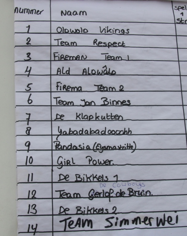 Totaal deden er 14 teams aan mee. Er werd fanatiek gestreden voor een eerste plaats. Het publiek genoot dat en grote getale aanwezig was. Gezelligheid en sportiviteit stond voor op en dat is geslaagd.