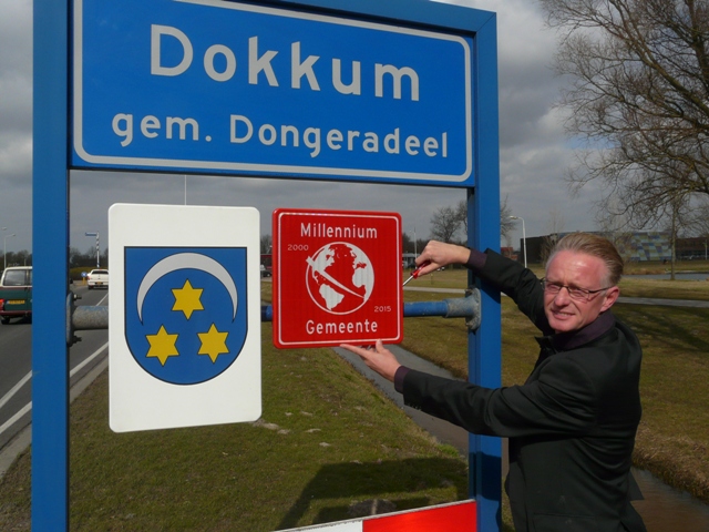 De gemeente Dongeradeel is in 2009 millenniumgemeente geworden. Vandaag op wereldwaterdag, 22 maart 2010, heeft wethouder Boersma het eerste millenniumbord opgehangen aan de rondweg in Dokkum. Dongeradeel steunt de Millennium Ontwikkelingsdoelen die door de Verenigde Naties zijn opgesteld. Eén van die doelen is het halveren van het aantal mensen dat geen toegang heeft tot schoon drinkwater en sanitaire voorzieningen. Door nu enkele borden in Dokkum op te hangen, laat de gemeente zien deze doelen te steunen.