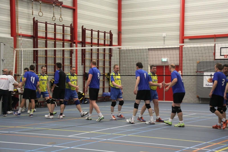 De twee nul voorsprong in sets leek de opmaat te zijn voor een gemakkelijke winst, maar niets was minder waar. De gasten wisten dat een ruim verlies voor een zeer moeilijk te overbruggen achterstand op de ranglijst zou zorgen en deden er in het vervolg een flinke schep bovenop. Via snelle midaanvallen en verbaal probeerden zij DOS te overrompelen. Hier slaagde de ploeg uiteindelijk echter niet in, de Kollumerzwagers gingen heel goed met het verhoogde spelniveau van de tegenstander mee. Aan het eind van zowel de derde als de vierde set kwam de thuisploeg door enkele waanzinnige reddingen en aanvallen steeds aan de goede kant van de score en beide sets werden vervolgens met het kleinst mogelijke verschil gewonnen.