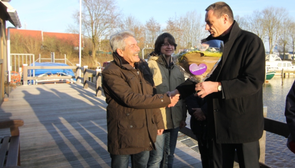 Het is gebruikelijk dat de eerste passant in het nieuwe seizoen een bos bloemen wordt aangeboden. Na welkom geheten te zijn bij de jachthaven gingen de passanten naar Restaurant Lauwersland in Oudwoude waar een heerlijke kop snert werd aangeboden door restauranthouder R.van Brummelen die met dit koude weer wel in de smaak viel.
