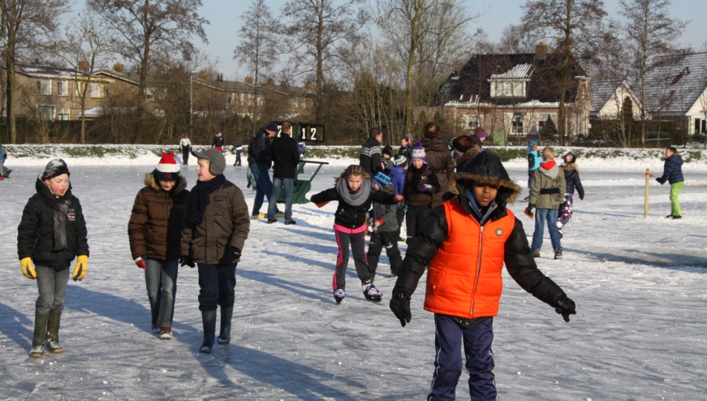 Maandagmiddag konden alle kinderen van de Koningin Julianaschool genieten van het prachtige winterweer. De groepen 3 t/m 8 hielden hun eigen Elfstedentocht op de ijsbaan. Iedere leerling kreeg een deelnemerskaart, waarop de namen van de elf steden waren vermeld. Elk rondje betekende door naar de volgende stad.