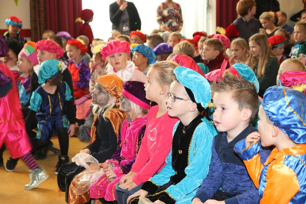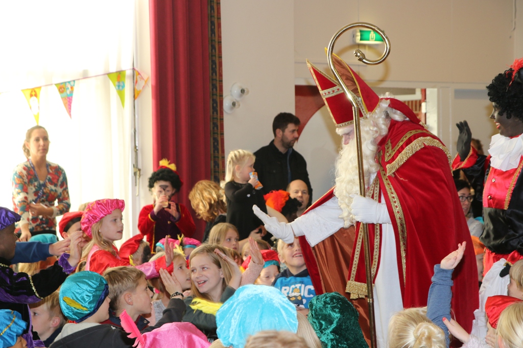 Maar gelukkig waren er twee wegwerkers van de gemeente Kollumerland die het lek snel konden dicht maken met behulp van de Pieten. Zo kon de Sint met zijn gevolg de rit weer vervolgen naar de Trije Doarpen. Ondanks het oponthoud was hij nog mooi op tijd voor een schitterend feest voor alle kinderen tot en met groep 5. De Sint werd verrast door de prachtige kleurplaten die de kinderen hadden gemaakt.