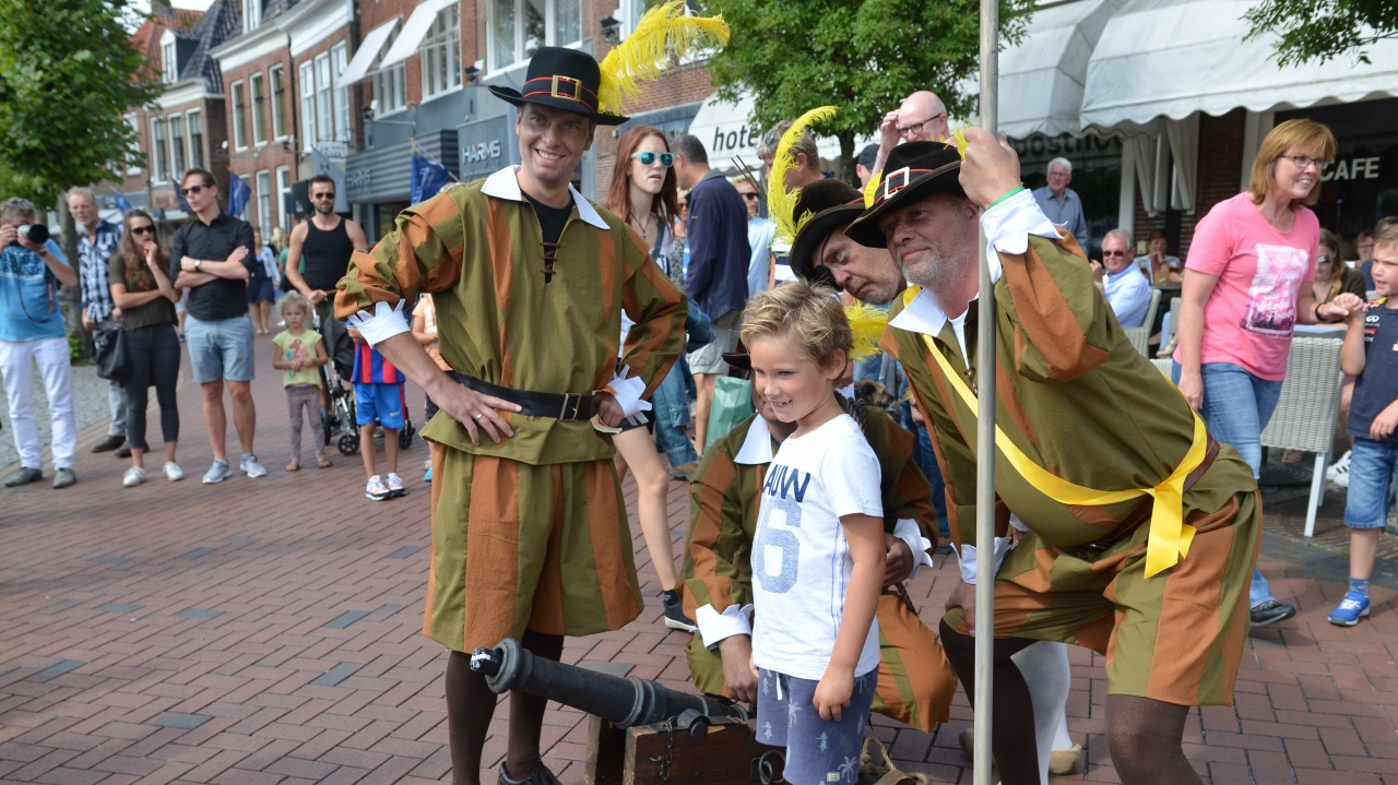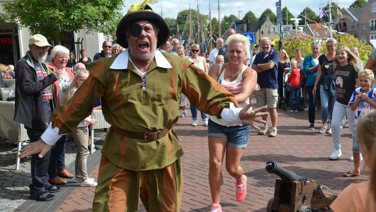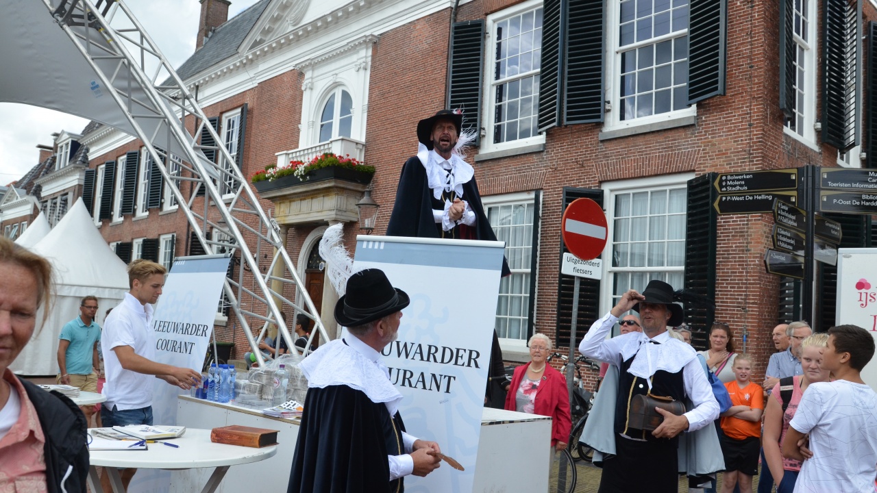 Het straattheater deed Dokkum vandaag even terugkeren naar vroeger. De acteurs vertolkten tussen al het watersportgeweld van de Admiraliteitsdagen door, de geschiedenis van de stad.