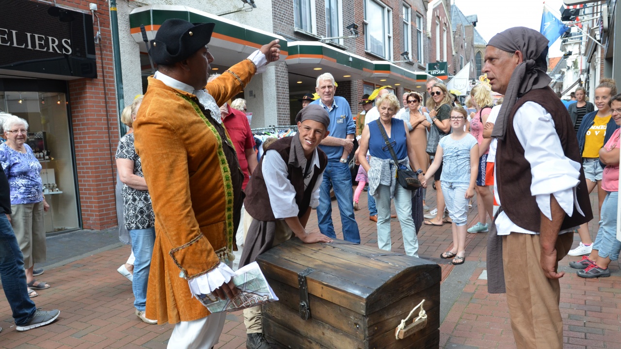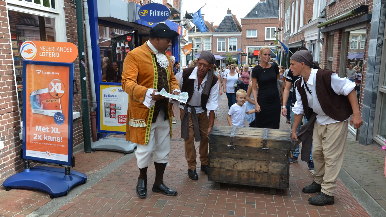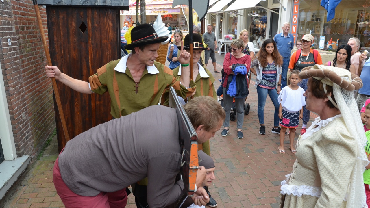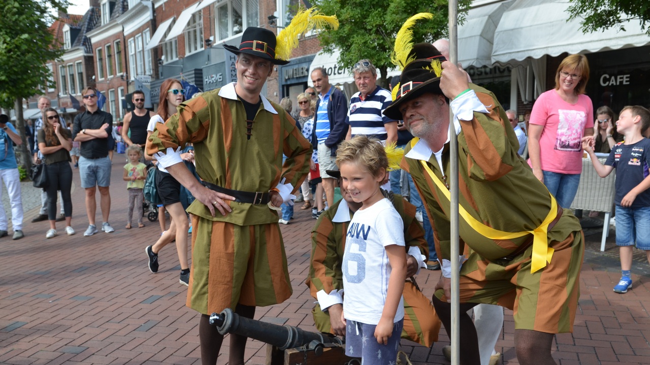 Het straattheater deed Dokkum vandaag even terugkeren naar vroeger. De acteurs vertolkten tussen al het watersportgeweld van de Admiraliteitsdagen door, de geschiedenis van de stad.