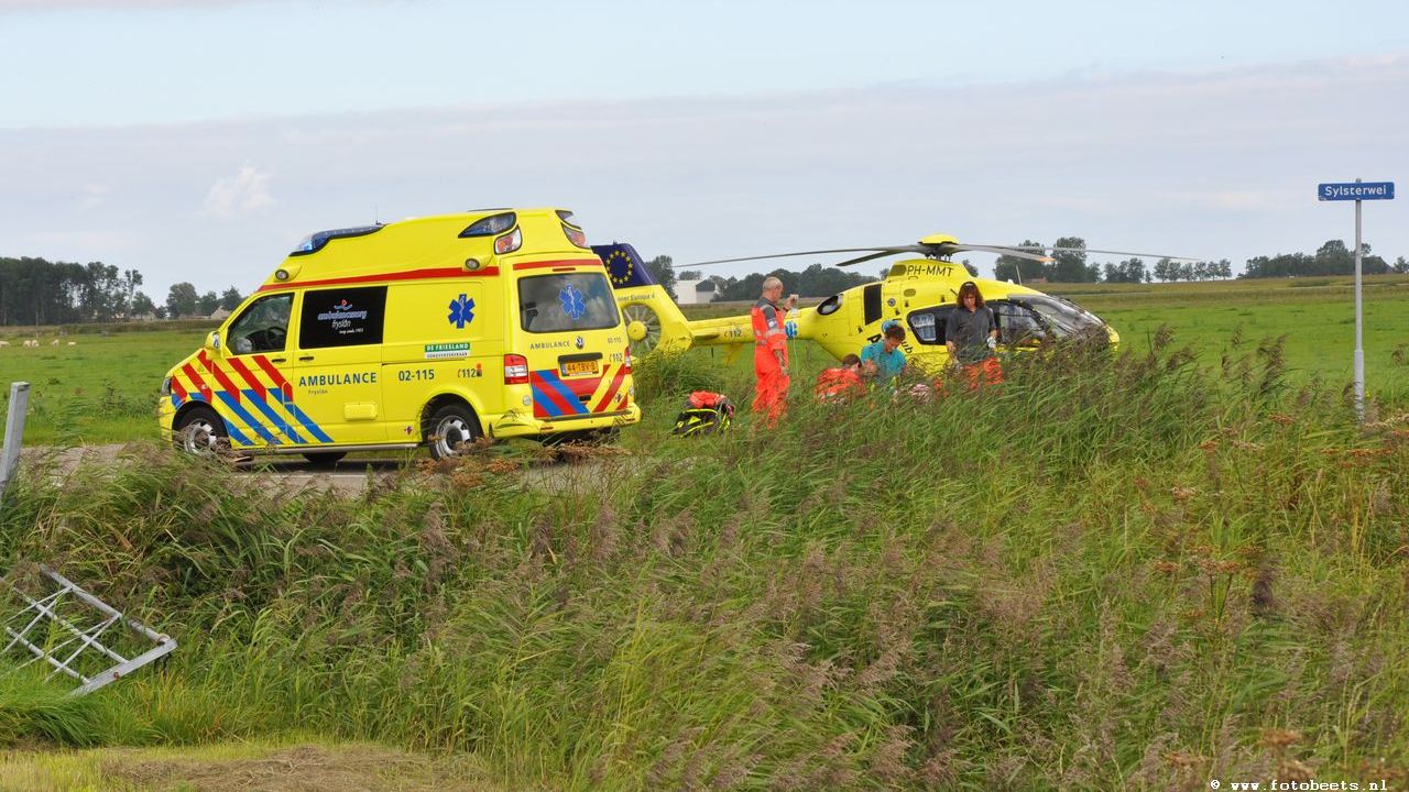 De man is met onbekend letsel per helikopter overgebracht naar het ziekenhuis. De automobilist kwam met de schrik vrij. De auto en de fiets raakten zwaar beschadigd. De politie heeft een onderzoek ingesteld naar de exacte oorzaak.