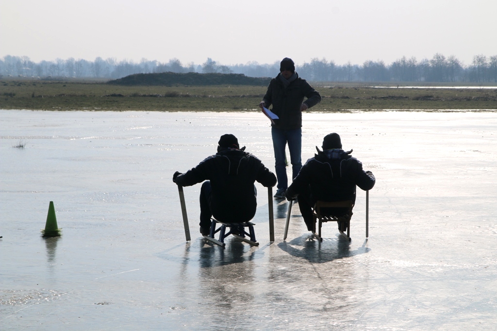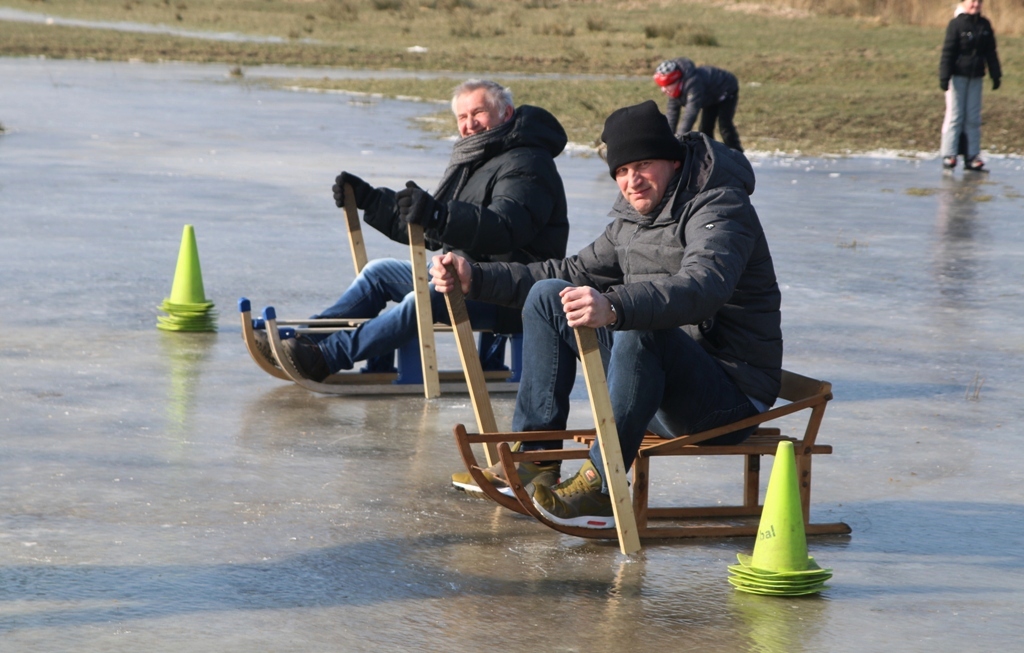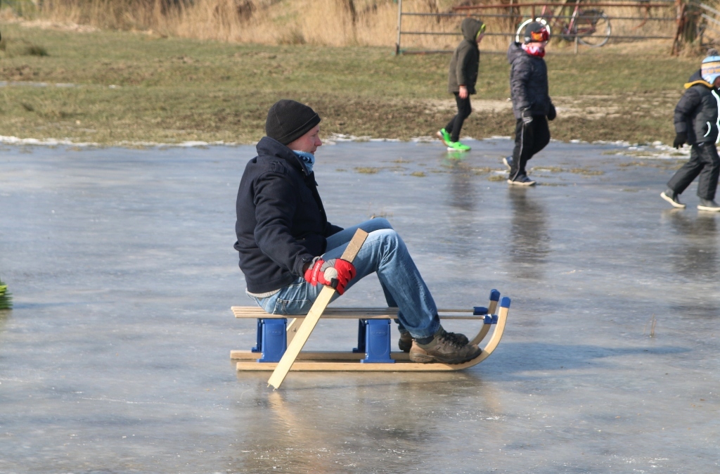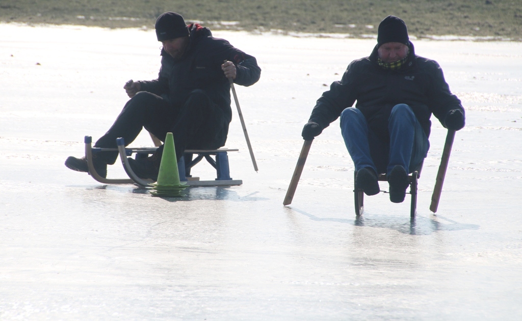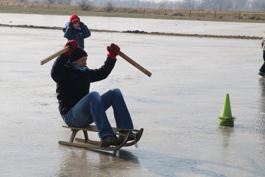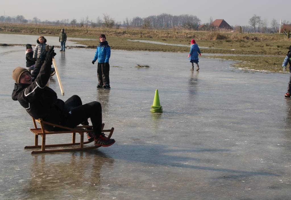 Zaterdagmiddag 3 maart werd er priksleeën gehouden bij de dolle in de Triemen op een ondergelopen stuk land door dames / Senioren van Friese Boys en de Duitse gasten van Douwe Dam.