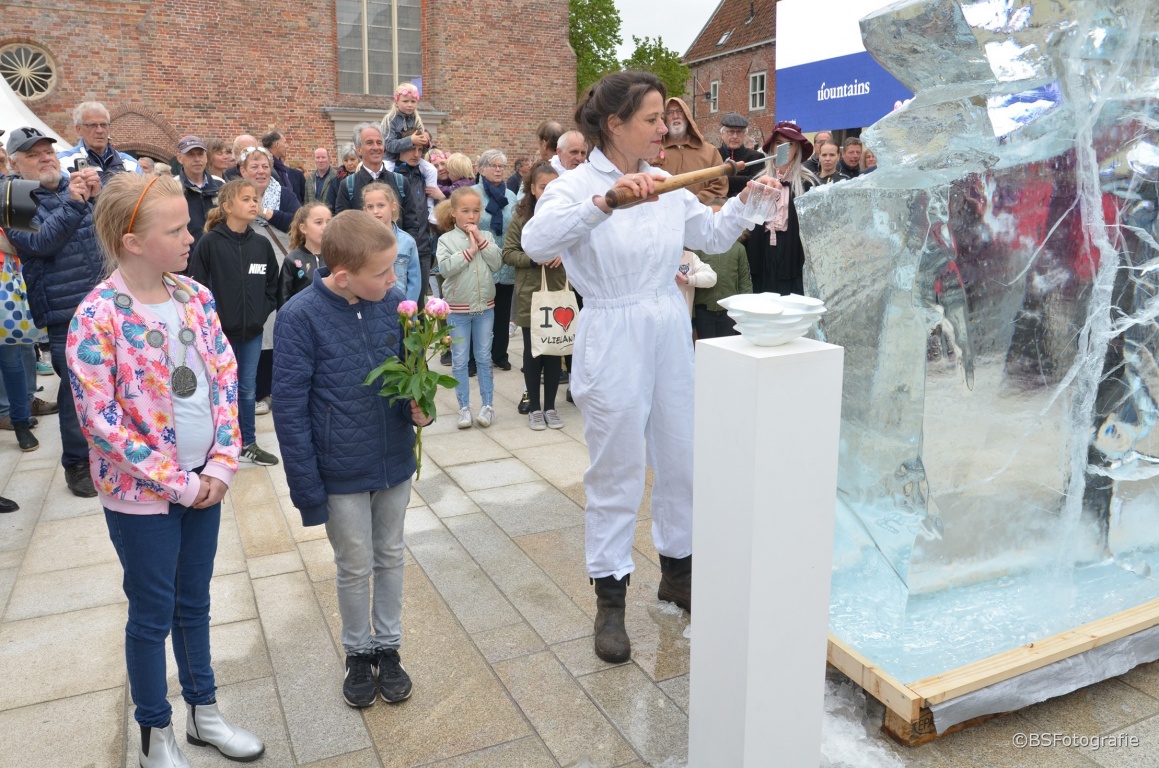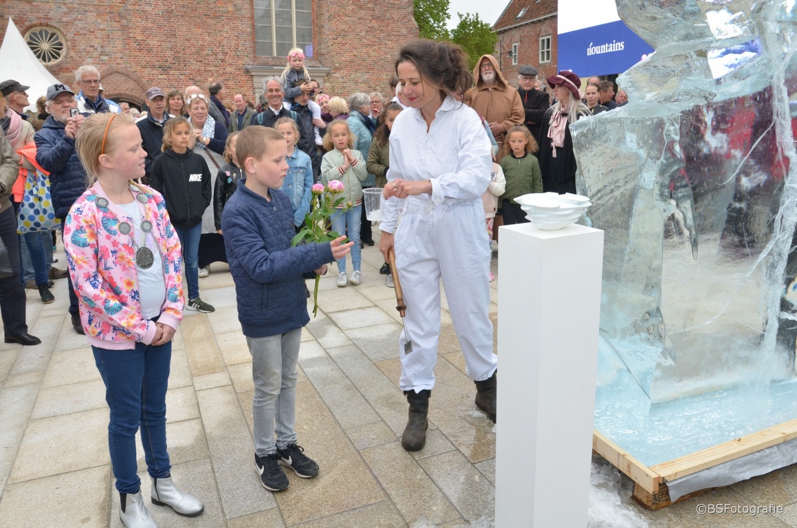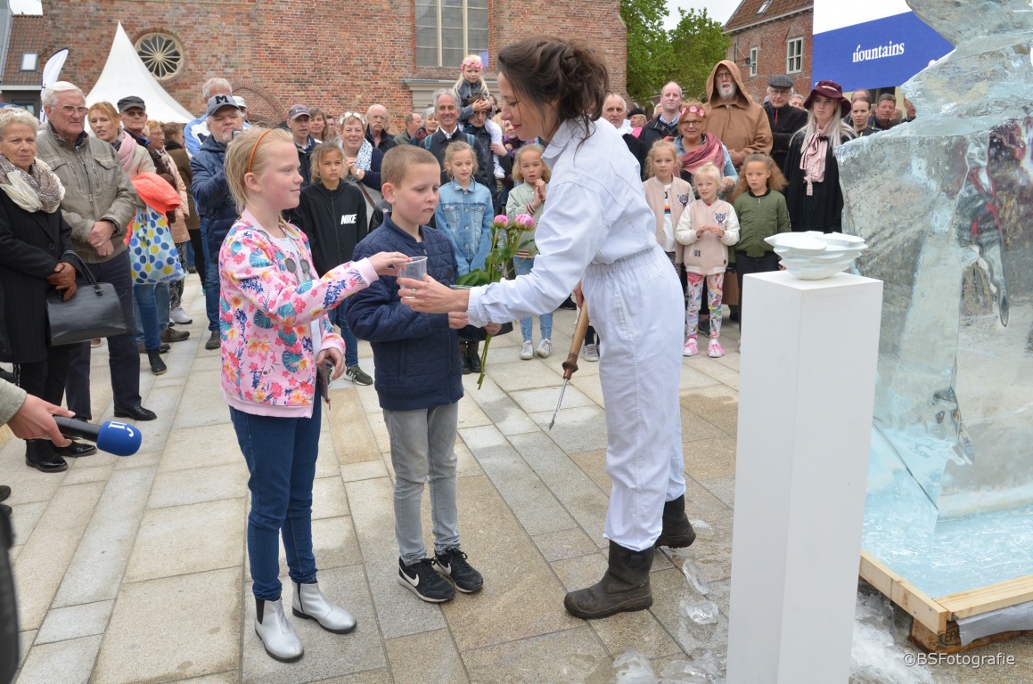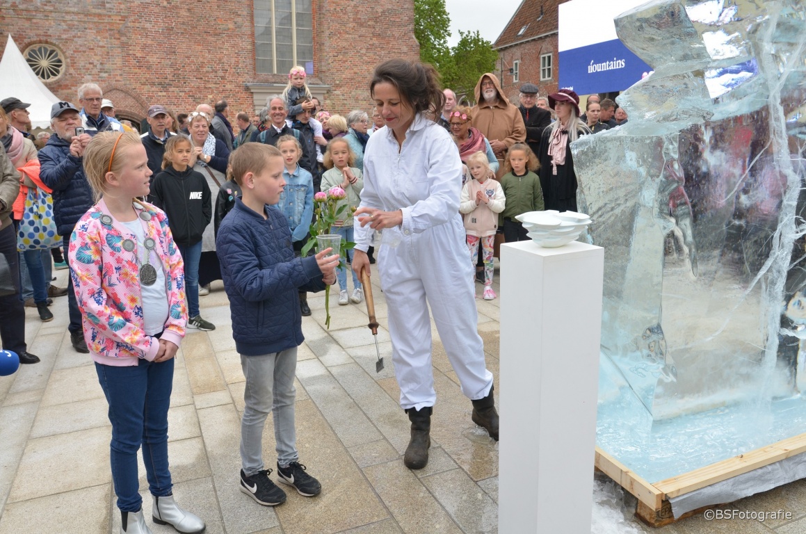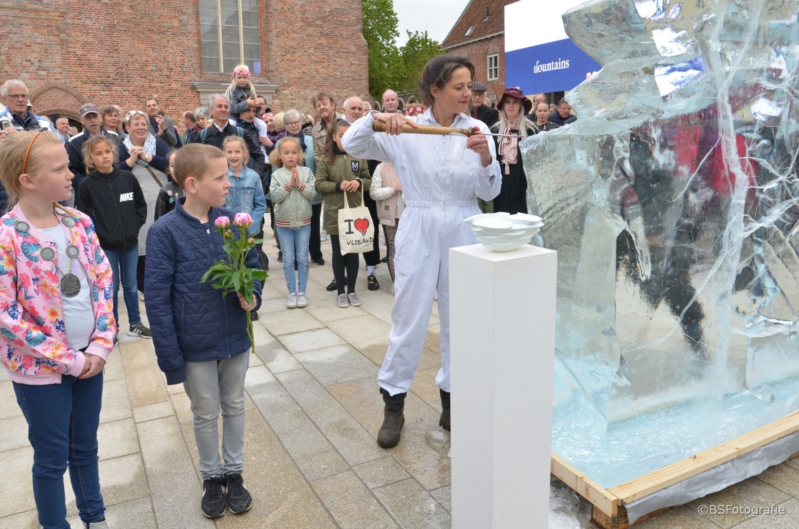 Door het vele ijs op het bovenplein van de Markt werden de aanwezigen opgewarmd met muziek van de Saksenbende Opus 3 en met dans van Dansstudio Dokkum. Er werd genoten van een lentebuffet met ‘Fryske hapkes’. Als starthandeling Schraapte Birthe Leemeijer enkele bekers vol met ijs van de ijssculptuur van de fontein, gemaakt door Damian van der Velden. De bekers werden overhandigd aan Kinderburgemeester Aukje Miedema en klasgenoot Meint Bosgra, Birthe Leemeijer kreeg van hen enkele pioenrozen overhandigd.