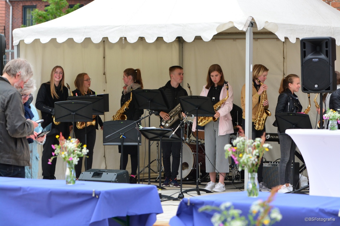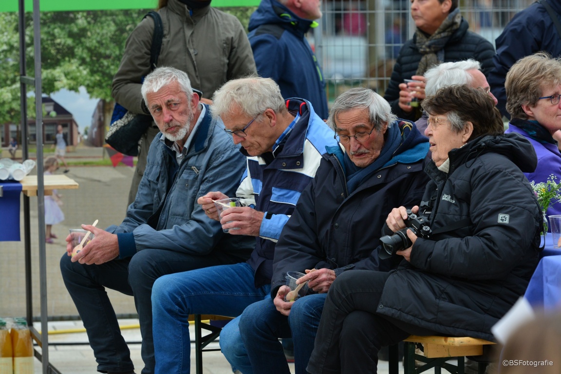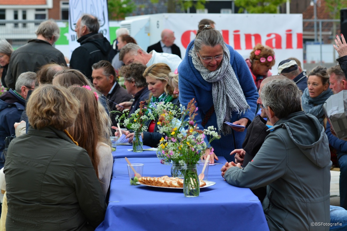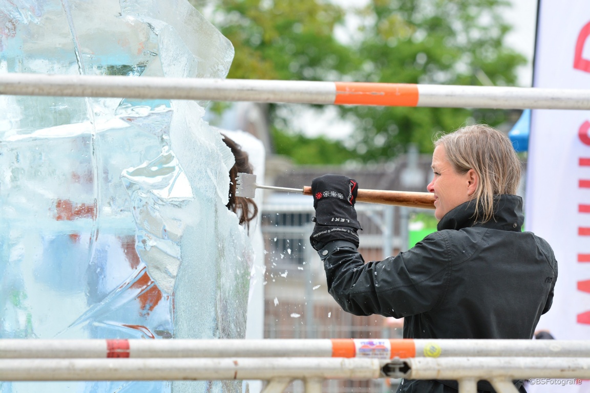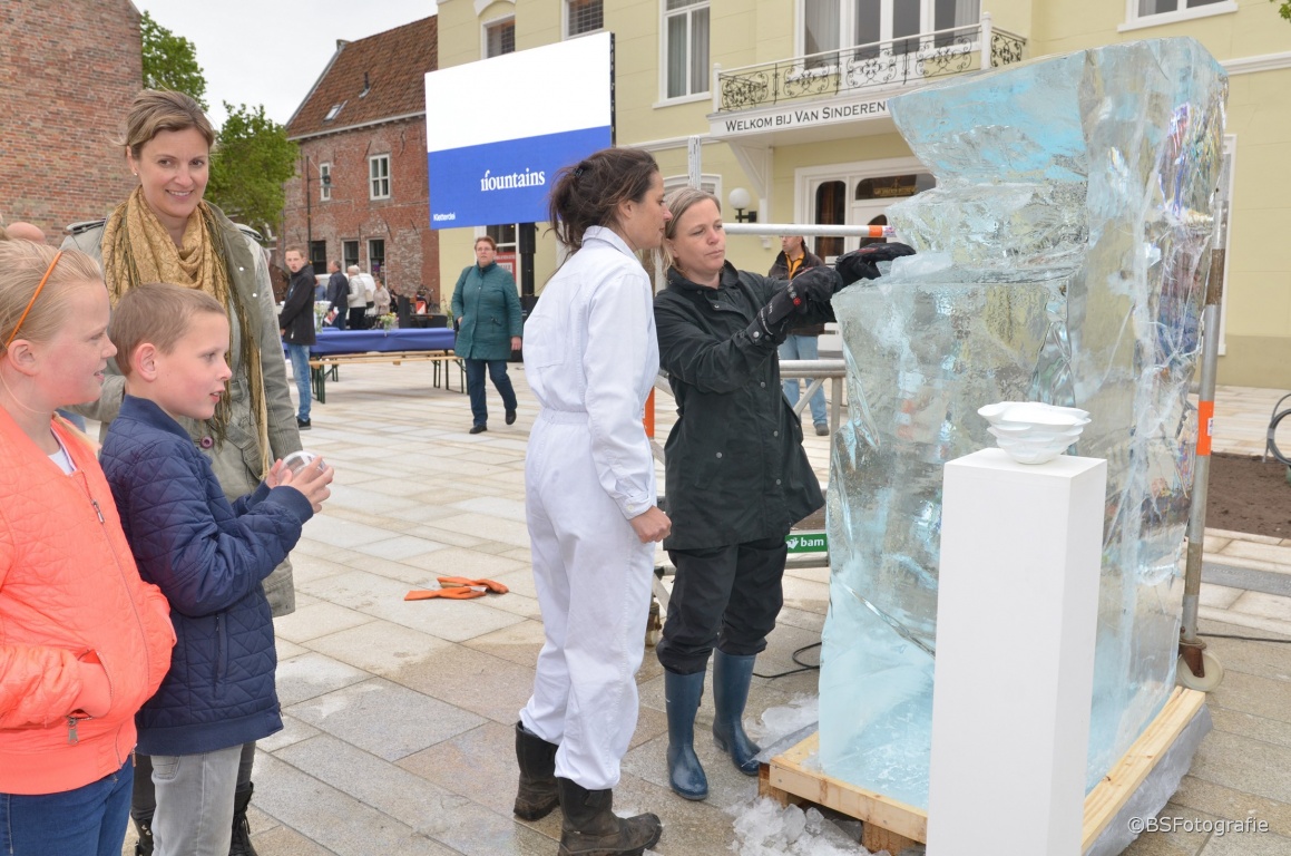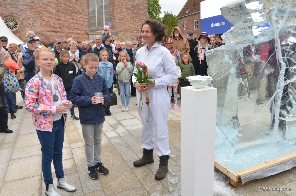 Door het vele ijs op het bovenplein van de Markt werden de aanwezigen opgewarmd met muziek van de Saksenbende Opus 3 en met dans van Dansstudio Dokkum. Er werd genoten van een lentebuffet met ‘Fryske hapkes’. Als starthandeling Schraapte Birthe Leemeijer enkele bekers vol met ijs van de ijssculptuur van de fontein, gemaakt door Damian van der Velden. De bekers werden overhandigd aan Kinderburgemeester Aukje Miedema en klasgenoot Meint Bosgra, Birthe Leemeijer kreeg van hen enkele pioenrozen overhandigd.