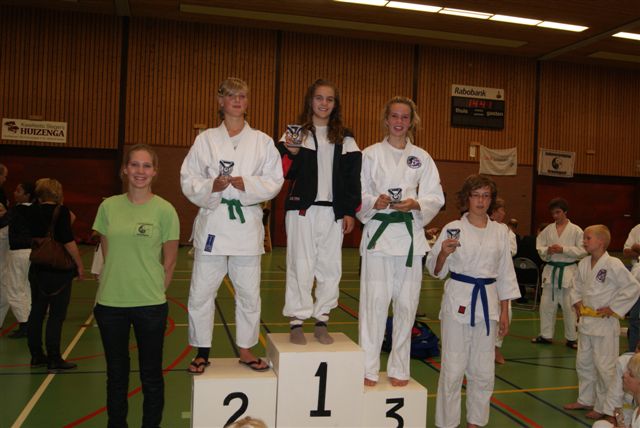 Beiden wisten dmv ippon scores zich te verzekeren van de volgende (finale)ronde. Hierin kwam Jan Bosma iets te kort voor het podium, Dennis van Leijen wist wederom met ippon scores de eerste plaats van het podium naar zich toe te trekken. Daarna was het de beurt aan Eelze Bosma en Femke van der Valk. Beide wisten in hun klasse goed te laten zien dat de vorm na de vakantie er weer is. Eelze Bosma wist ondanks goede strijd niet door te dringen tot de finaleronde. Femke van der Valk wist daarin tegen wel het podium te bereiken en wel de 3e plaats.