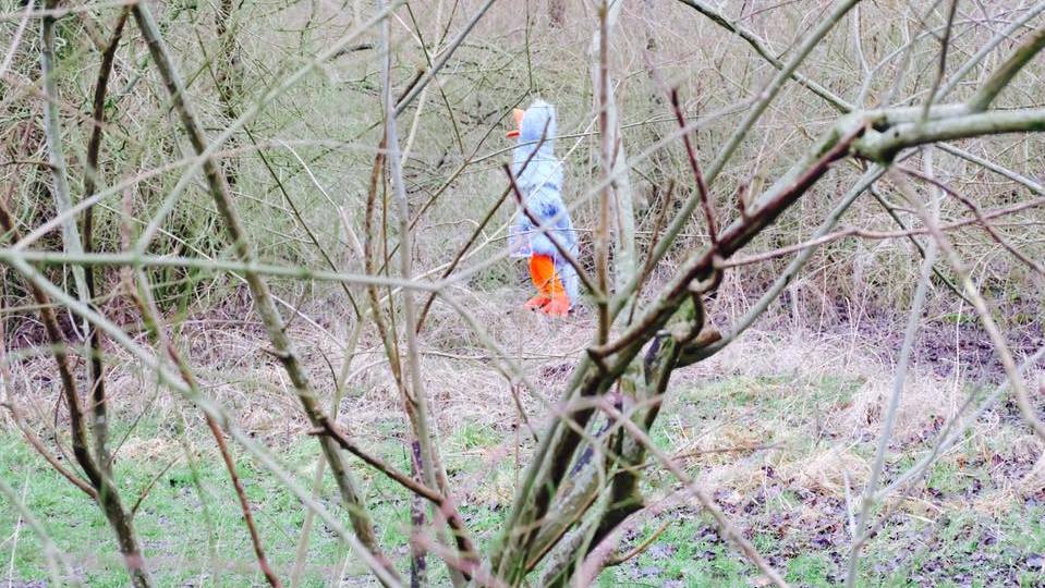 ‘Plankgas rij ik Kollum uit en binnen tien minuten zie ik mijn vogelmaat al staan. Zo te zien heeft hij de vogel nog in beeld. “Hij gaat net de hoek om”, roept hij vanuit de verte. Samen lopen we langs de struikjes om de vogel terug te vinden. Opeens ontwaar ik een idioot in een Pinopak tussen de bosjes. Eerst denk ik aan een homo, ik ben op die plek al een paar keer belaagd. Dan zie ik dat de dansende Pino een bordje in de vlerken heeft. Ik vermoed dan nog dat het om een puzzeltocht gaat, totdat ik lees wat er op het bordje staat: Happy Birthday. Ik begin meteen Bouke (zijn vogelmaat, red.) te smoren en vraag me af wie er in dat pak zal zitten. Als Pino dichterbij komt hoor ik de stem van mijn dochter……..Grrrr