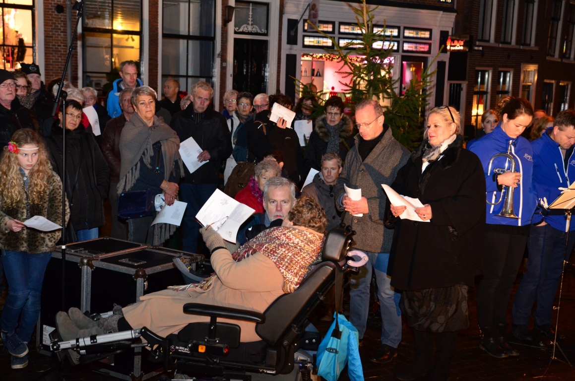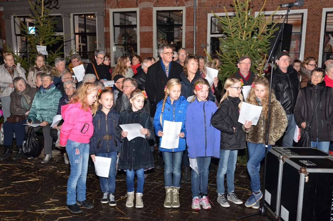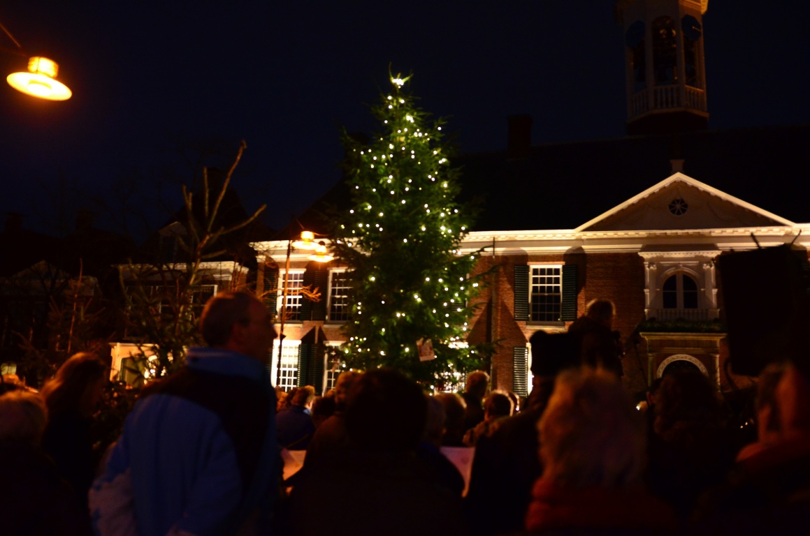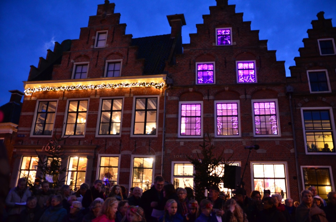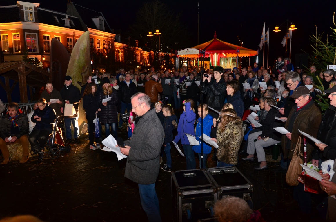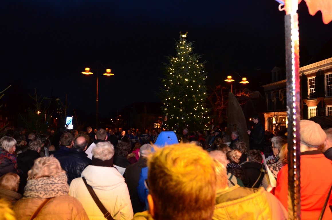 Er stonden vuurkorven voor de sfeer. In de binnenstad stonden verschillende koren opgesteld voor de vrolijke noot. Om 17.00 uur werd de middag afgesloten met zang, gedichten en muziek en werd de boom nog extra in het licht gezet. Begeleiding van de zang werd gedaan door fanfare Oranje Dokkum. Het gesproken en bemoedigend woord kwam van René Koster en ds. Herman de Vries.