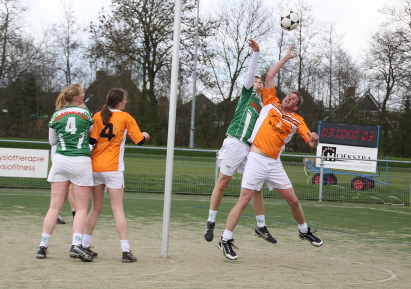 Het was nu zaak om in de tweede helft scherp te blijven en door te korfballen, zoals in de eerste helft het geval was. Het vak van Jarich Hiemstra had moeite om het aanvalsspel goed neer te zetten en vrijuit te spelen. Het werd een beetje zoeken tijdens hun aanvallen. Toch wisten ze wel op momenten dat het belangrijk was te scoren. Het vak van Arjan Kieviet bleef verdedigend net zo doorgaan als ze dat in de eerste helft deden. Het was voor de toeschouwers aantrekkelijk korfbal om naar te kijken. De heren bleven de steals pakken en Gerdien Kuipers en Rianne Wiersma verdedigden zeer geconcentreerd en goed.