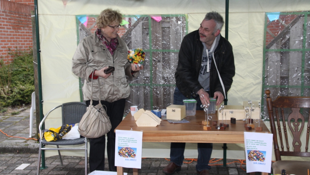 Heel wat spulletjes zijn er binnen gebracht met dank aan familie en vrienden van de cliënten die wonen aan Molenerf. Cliënten waren zeer actief in het bedenken van leuke acties om de verkoop nog aantrekkelijker te maken. De boel werd opgefleurd met vrolijke muziek van Richard achter de keyboard.
