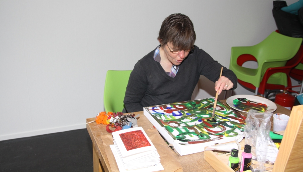 Ineke die in het dagelijkse leven kunstenares is bij de Blauwe roek heeft wat van haar mooie doeken tentoongesteld. Het was een gezellige drukte zowel buiten als binnen in het koffiehuske waar koffie en zelfgebakken cake werd aangeboden. Dit gebeuren is zeker voor herhaling vatbaar en hopelijk in de toekomst met wat meer bekendheid zodat nog meer mensen hiervan kunnen genieten.