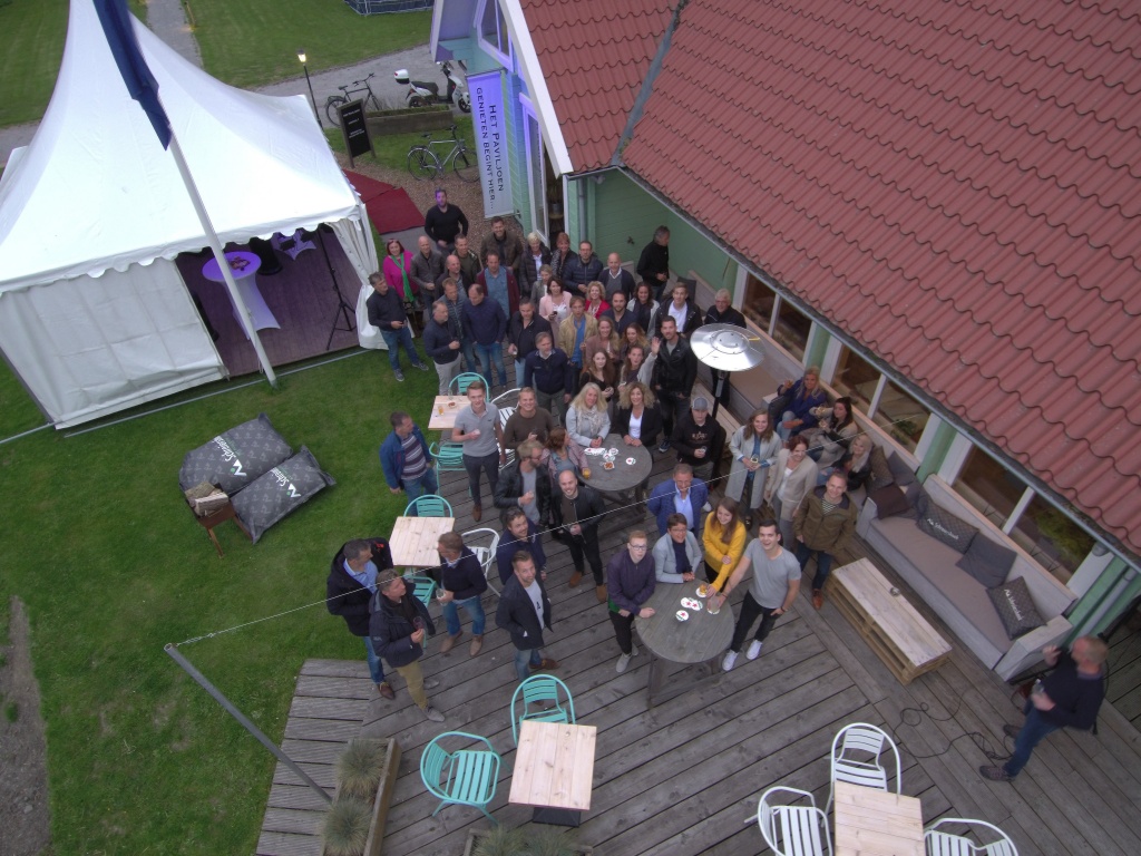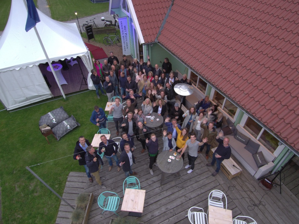 Bote Sape Schoorstra trad spontaan op als ceremoniemeester om de hele groep buiten bij elkaar te krijgen voor een teamfoto. Onno Kikstra maakte foto’s met een drone en Tim Groeneveld schoot foto’s vanaf de vloer. Er was sfeer, gezelligheid en muziek. Ook werden er vast veel e-mailadressen en telefoonnummers uitgewisseld voor interviews en updates voor de komende Admiraliteitskrant. Deze komende editie krijgt een upgrade qua uitstraling en inhoud, dus let op je brievenbus kort voor het festival losbarst.