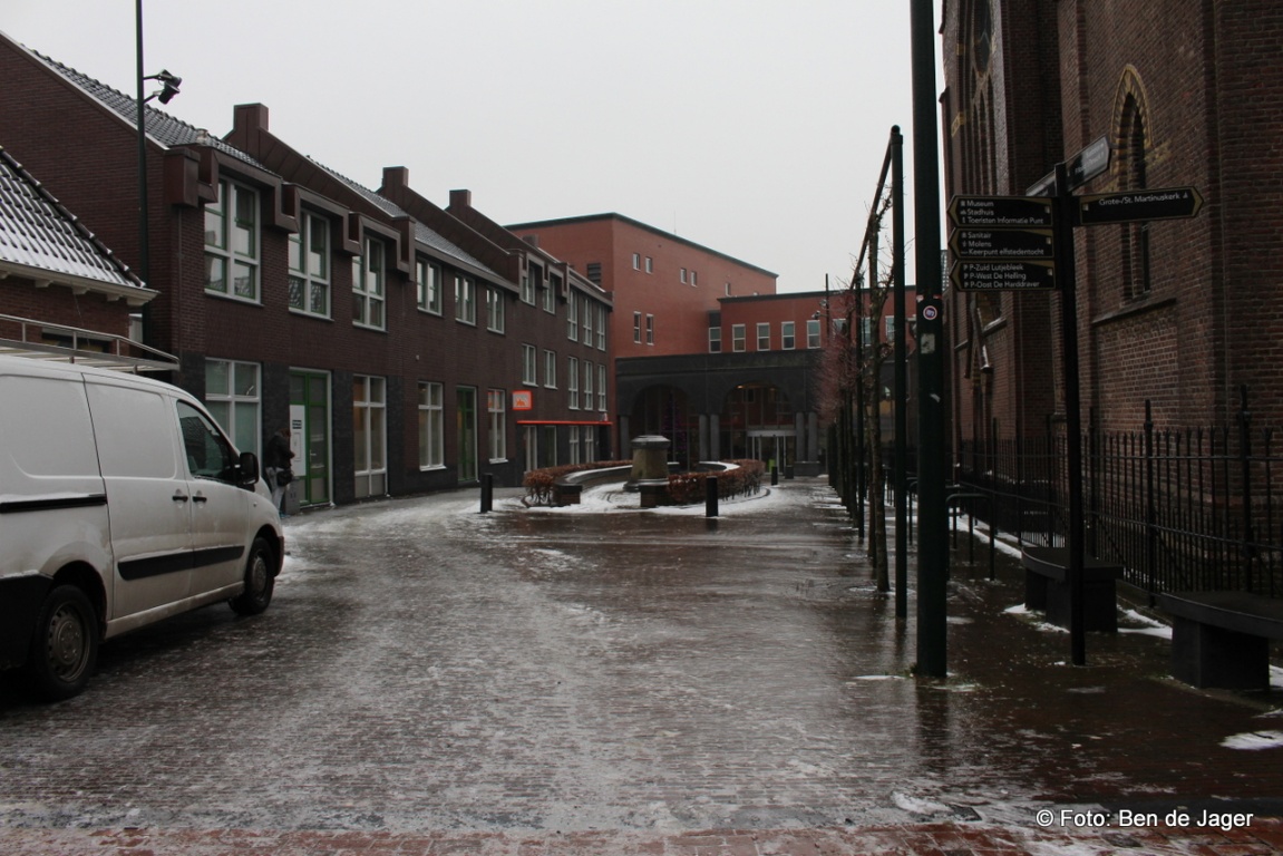 Maandag op dinsdag kwam ook de Dokkumer binnenstad onder een laag ijzel te liggen. De ondernemers konden allemaal rond 10:00 uur hun eigen winkel betreden.