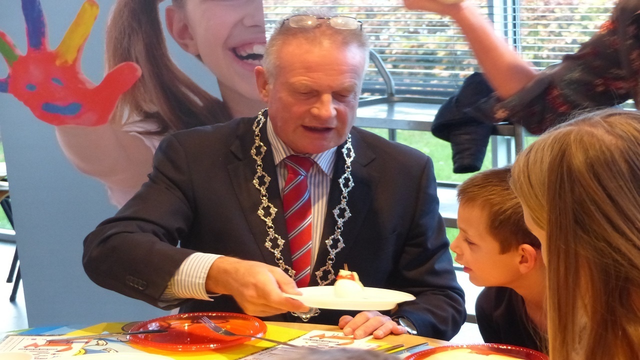 Kinderen de Wingerd ontbijten met burgemeester Heldoorn