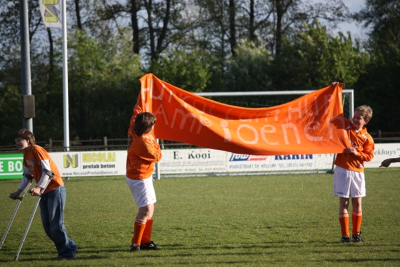 Met een 0-0 stand gingen ze de rust in,na de pauze was het hetzelfde beeld met zo nu en dan een snelle counter van kollum,het was toch het Fean die de meeste kansen kreeg. Pas halverwege de 2e helf kwam kollum er door met een snelle aanval op links en met een beetje geluk verdween het schot van Joel Adema in het doel van de tegenstander.Het werd nog een hectisch de laatste tien minuten. Maar de jongens hielden de stand vast tot het laatste fluitsignaal van de scheids,daarna barstte het gejuich los, het kampioenschap was een feit