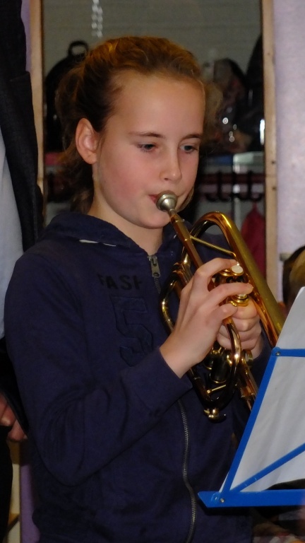 De kinderen hebben 6 weken les gehad van Gerk Huisma op de cornet. Donderdagochtend was de eindpresentatie onder leiding van Gerk Huisma en Bjinse IJlstra. Het was een hele prestatie wat deze kinderen in zes weken tijd al konden spelen. Veel ouders en grootouders waren naar de Stapstien gekomen om dit te beluisteren.