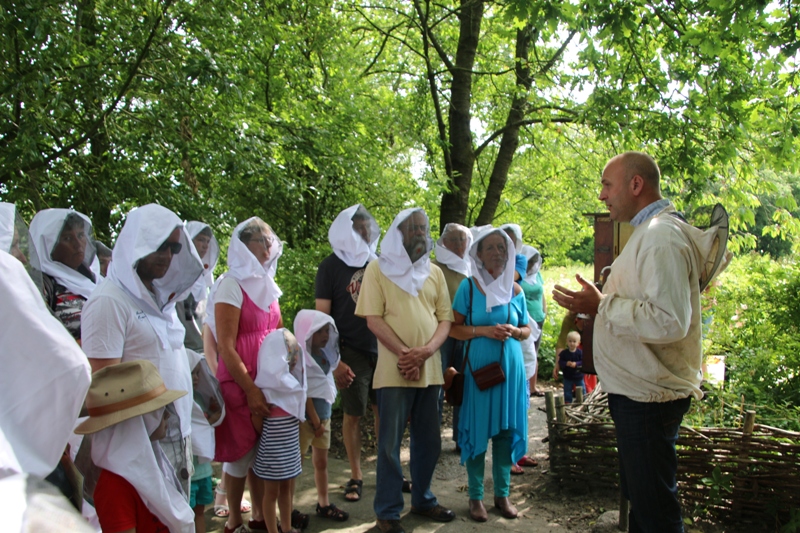 Imkers vertellen graag over hun hobby. Ze leggen uit hoe belangrijk bijen zijn voor het in stand houden van de natuur en daarmee voor ons voedsel. Tijdens de imkerijdag namen zij jong en oud mee naar de bijenstal op De Kruidhof, om een kijkje te nemen bij het bijenvolk. Natuurlijk met een echte imkerskap op. Zo is het bijvoorbeeld prachtig om de koningin te ontdekken. En wat het verschil is tussen de moer (koningin), darren (mannetjes) en werksters (vrouwelijke bijen