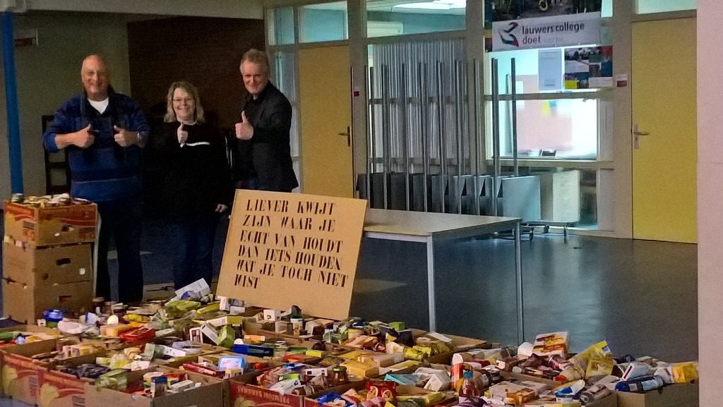 Hoe zou het gaan bij vertrek, je kunt niet met 1000 leerlingen tegelijk de straat op gaan. Hoe zou het weer zijn, wat te doen bij regen en of hagel. Hebben de leerlingen spullen bij zich voor de voedselbank, kunnen we met elkaar wel een mooi aantal dozen vullen? Allemaal vragen die meegenomen werden in de voorbereiding.