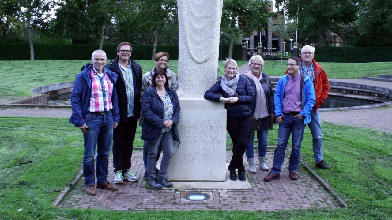 Fotobijschrift: Enkele docenten van de Konrad Adenauer Schule en het Dockinga College vmbo-gt die dit project rondom Bonifatius gedachtengoed voor hun leerlingen georganiseerd hebben.