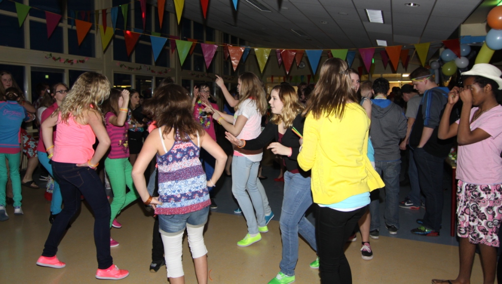 Alle groepen konden zich van 20.00 tot 23.00 uur helemaal uitleven op hun favoriete muziek. Gekleed in hun mooiste kleding konden ze naar hartelust dansen en springen op de muziek gedraaid door dj leerlingen van het Lauwerscollege.