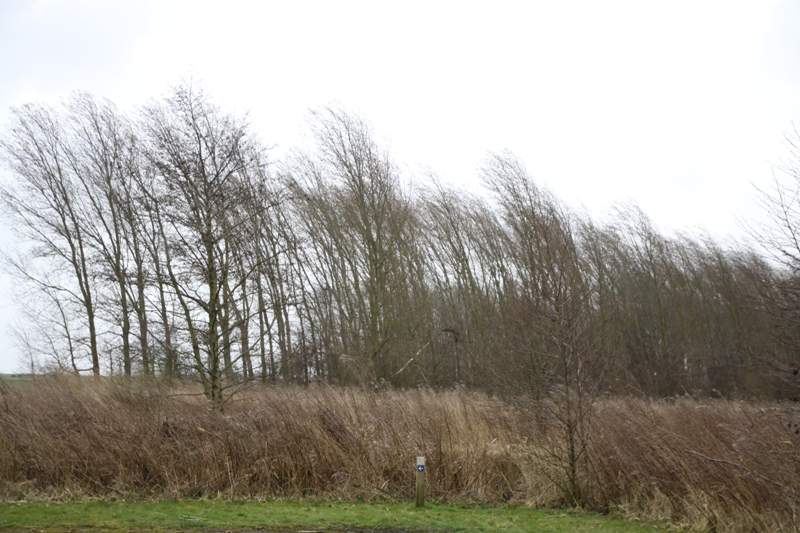 In Kollum waaiden twee bomen om op de Limburg Stirumweg op het fietspad. En bij de Kollumerwaard was het water flink onstuimig.