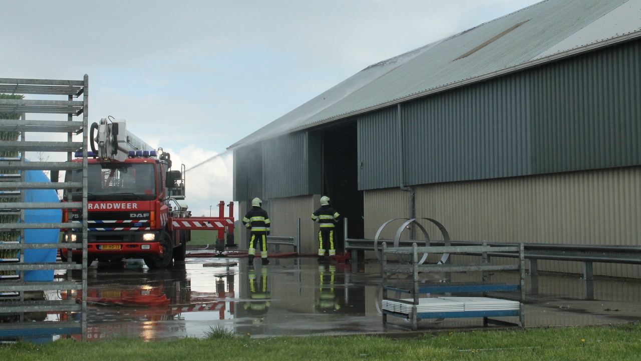 Door de brand heeft de loods forse schade opgelopen. Door het snelle optreden kon voorkomen worden dat de loods volledig verloren ging.