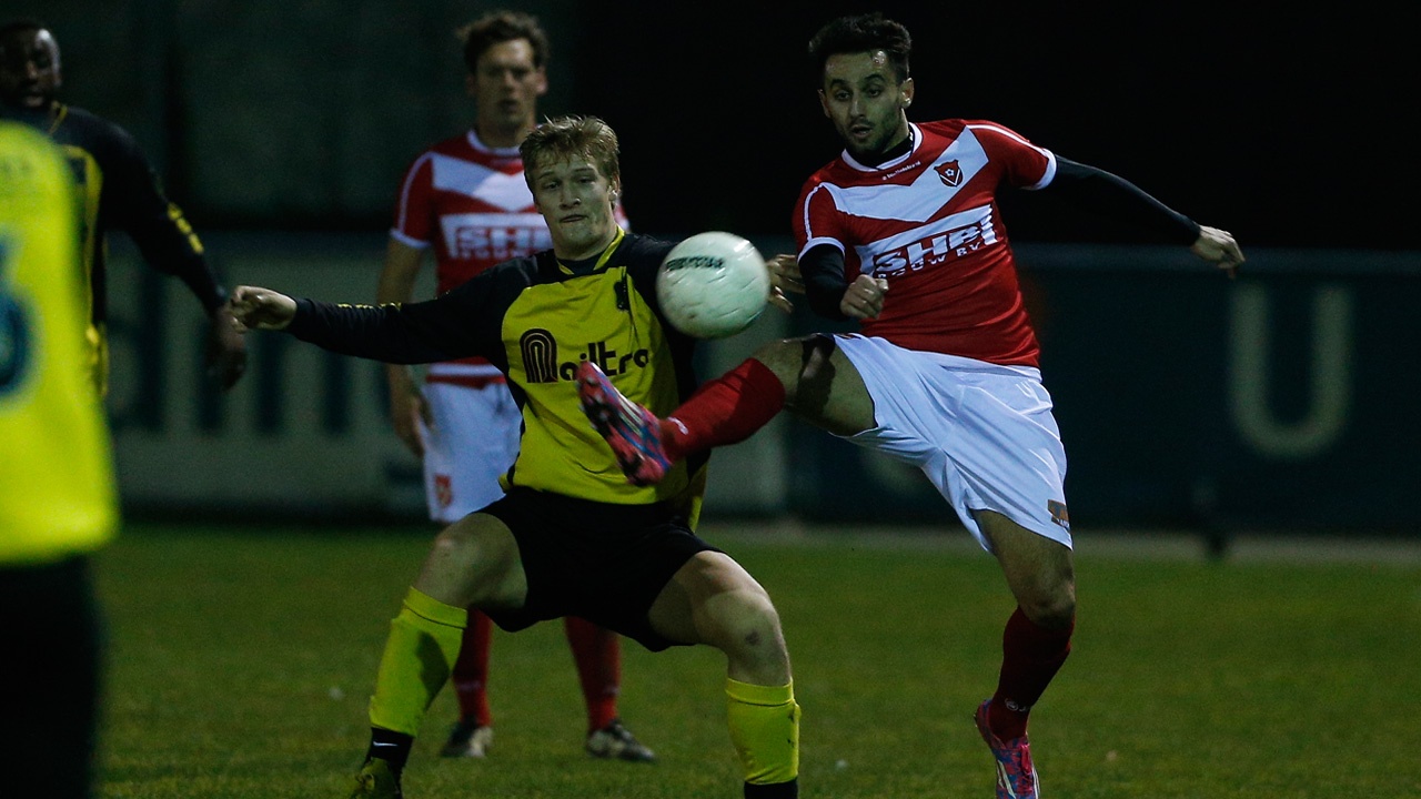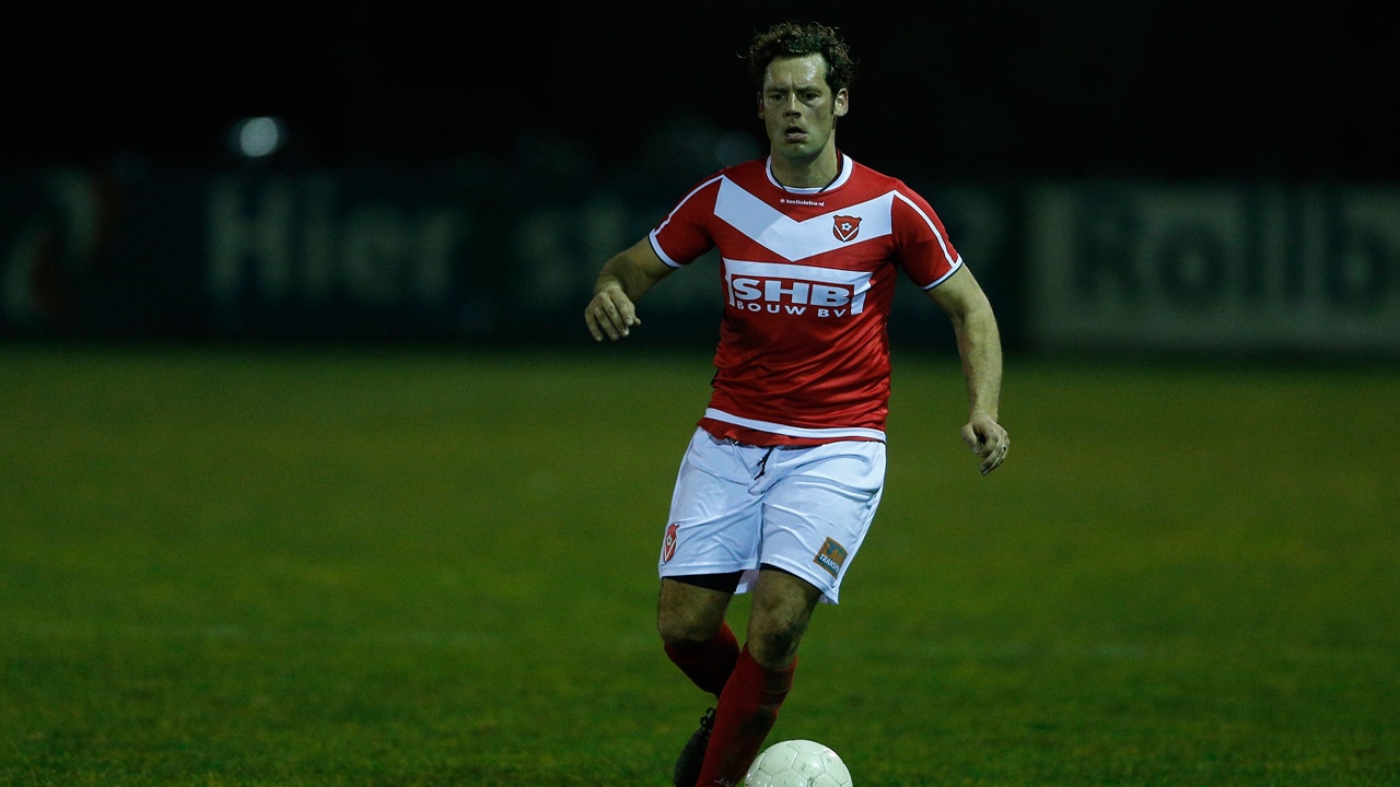 Foto 1: Duel tussen Okkie den Boon en Arton Musliu om de bal.